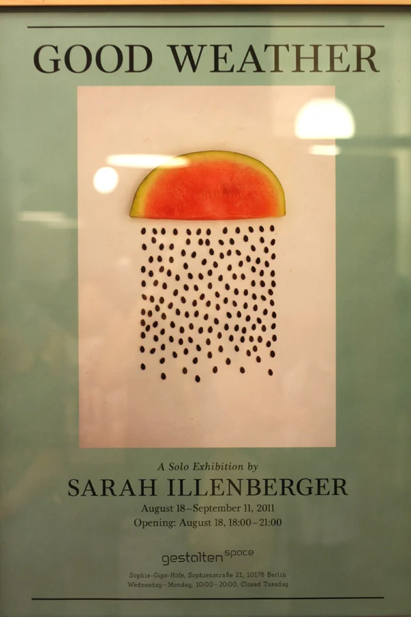 Und so war es nur eine Frage der Zeit bis sie ihre erste eigene Ausstellung bekommt. Sie trägt den Namen »Good Weather« und wurde letzte Woche im Gestalten Space in Berlin Mitte eröffnet. Zu betrachten sind großformatige Fotos und Originale ihrer Arbeiten. Wer sie sehen möchte sollte schnell sein, die Ausstellung läuft nur noch bist zum 11. September.