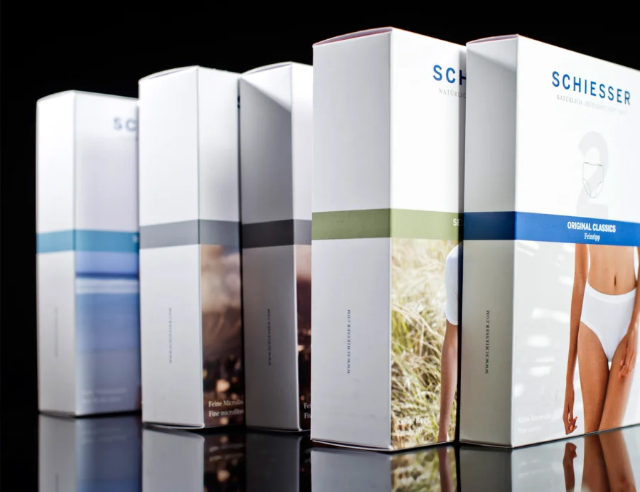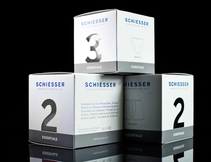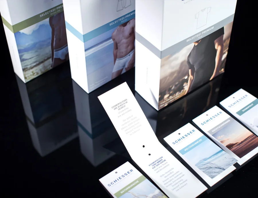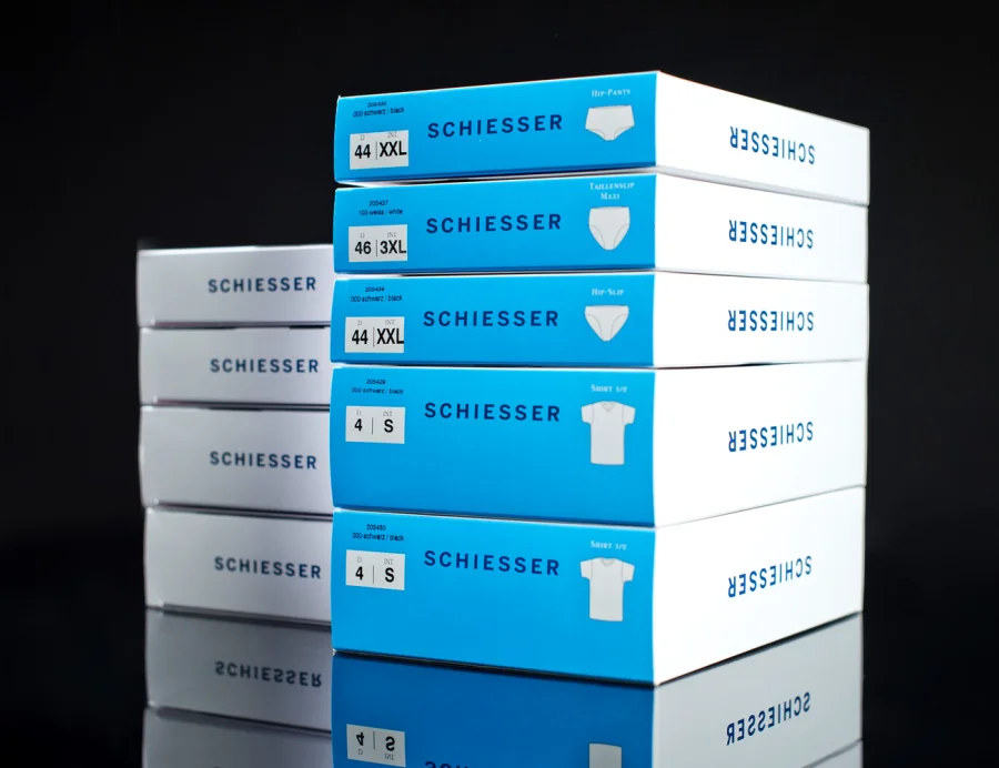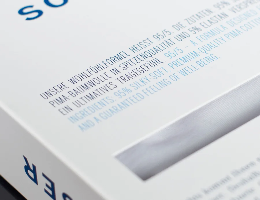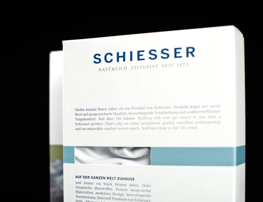 »Hatch Berlin« gestaltet das neue Verpackungsdesign der Schiesser AG mit dem von »Claudia Hammerschmidt« entwickelten Bildkonzept (Fotograf: Serge Guerand). Neben dem Redesign der traditionellen Verpackungslinie kreierte Hatch Berlin den neuen Markenauftritt von »95/5« und unterstützt die Schiesser AG bei der Umsetzung ihres neuen Corporate Designs.