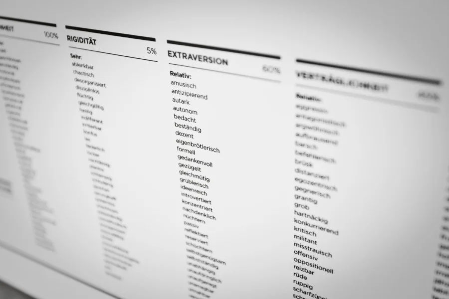 Um die für das Plakat erforderlichen Daten zu erhalten, ist ein Erfassungsverfahren notwendig, in dem die verschiedensten Parameter abgefragt und analysiert werden. Hierbei handelt es sich um demografische, soziografische und psychometrische Daten. Den Kern des Systems bildet ein Schlüsselsymbol, das mit Hilfe des wissenschaftlich anerkannten Persönlichkeitstests NEO-FFI generiert wird und die fünf grundlegenden Persönlichkeitsdimensionen in ihren Ausprägungen visualisiert. Weiterhin werden Verhaltensmuster, Milieuzugehörigkeit, Interessensorientierung und Sprachstile abgefragt, die von allgemeinen Parametern, wie dem Alter oder dem Geschlecht, ergänzt werden.
