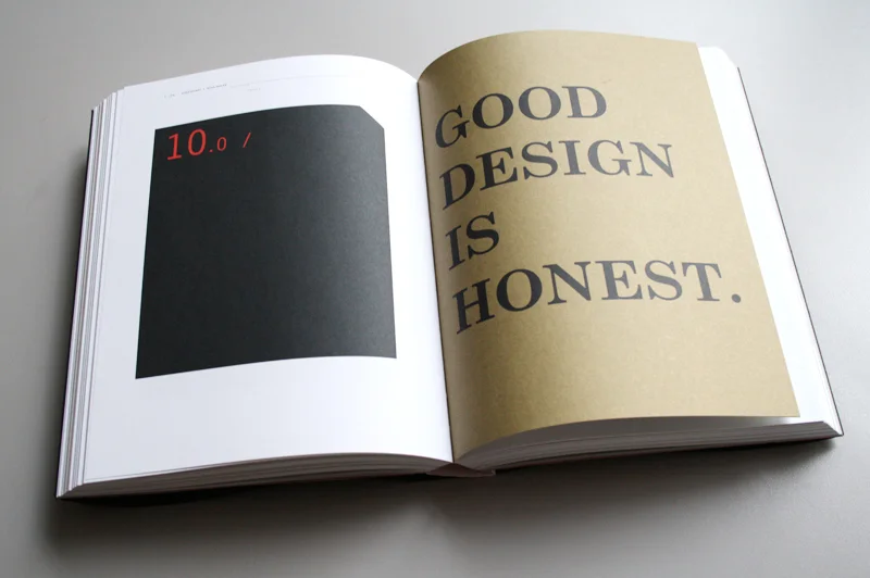 Jede der Thesen beginnt mit »Good design« und endet mit knappen Statements wie: »…is slow, »… is honest« oder »… can change the world.«. Und weil solche Aussagen schwer wiegen, werden sie auf der folgenden Seite dann doch etwas ausführlicher erklärt. Natürlich kann eine Agentur wie stichpunkt jedes Statement mit eigenen Arbeitsbeispielen untermalen und an der Stelle wird das Buch zu einer großen Inspirationsquelle.