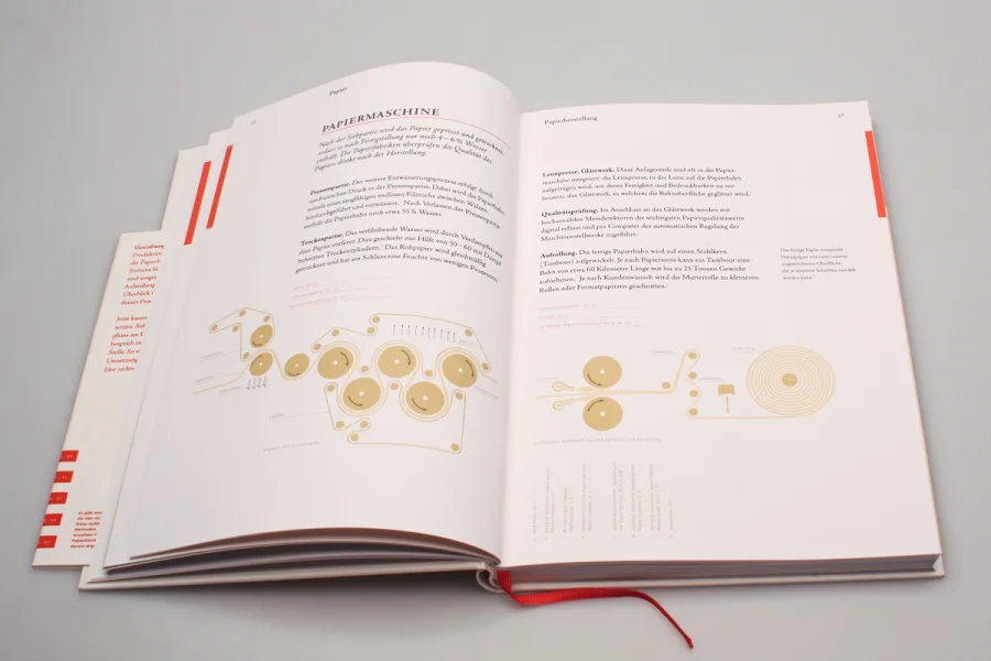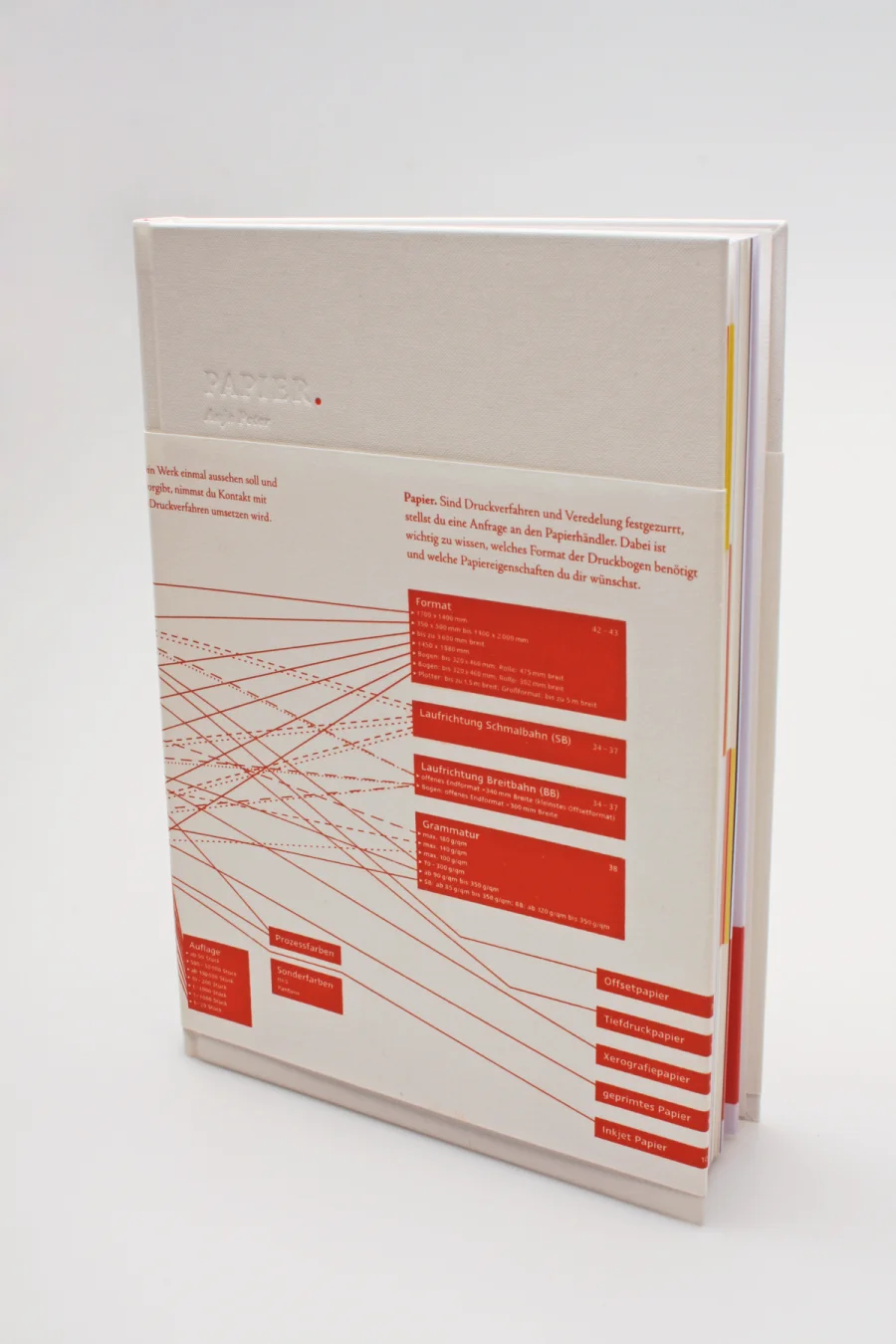 Das 200-seitige Handbuch zu Papier, Druck und Weiterverarbeitung verbindet die Faszination über Papier mit seiner praktischen Seite. Es ist sowohl Papiermusterbuch, Nachschlagewerk als auch Leselektüre und Notizbuch; ganz auf die unterschiedlichen Bedürfnisse und Kenntnisse des Designstudenten ausgerichtet. Zahlreiche Illustrationen vereinfachen die teilweise komplexen und fremden Inhalte und ermöglichen ein visuelles Verstehen. Mit Texten aus Fachliteratur nach Relevanz und Informationsdichte gewählt und auf das Wesentliche reduziert, unterstützt es Designstudenten und Absolventen bei zukünftigen Printproduktionen.