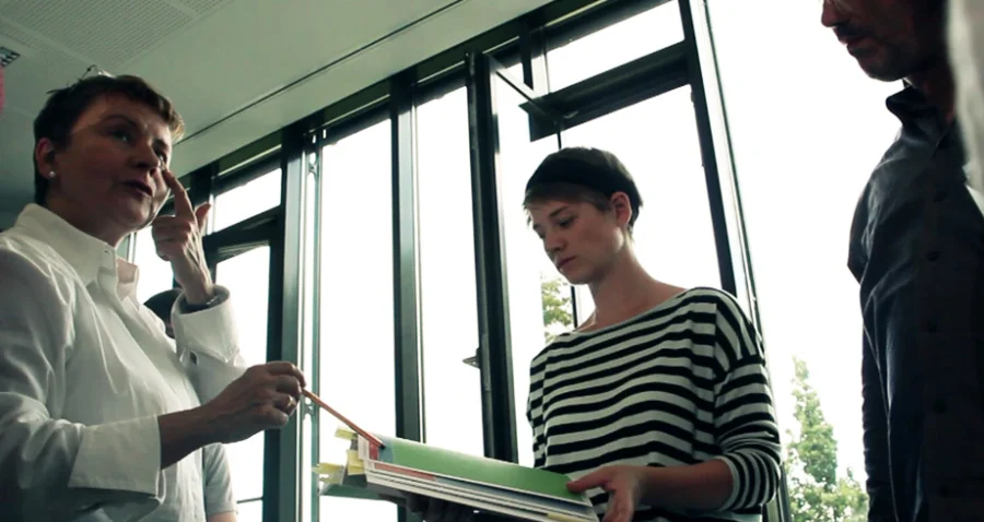 Die Zusammenarbeit mit Studierenden macht mir sehr viel Spaß. Diejenigen, die sich auf dieses komplexe Themenfeld einlassen, sind hoch motiviert und bereit über den Tellerrand der reinen Gestaltung zu blicken. In meinem Verständnis ist Gestaltung die Bestimmung durch Darstellung, insofern gehört die Auseinandersetzung mit der Unternehmenskultur und mit den fachlichen Inhalten der Unternehmen zum Seminar. Auch das löst ›Kribbeln im Kopf‹ aus und wird von Studierenden gerne angenommen.