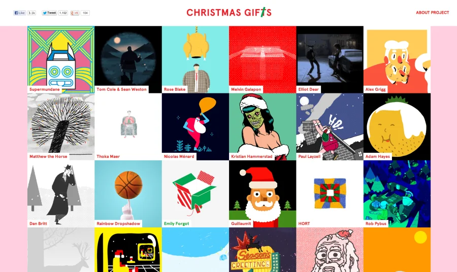 Passend zum 25jährigen Geburtstag des GIFs gibt es eine weihnachtliche Sammlung von animierten GIFs, die sich als E-Card verschicken lassen. Die GIFs sind von bekannten Studios (z.B. Hort) und Illustratoren gestaltet und bilden eine durchaus große Bandbreite an Weihnachtsideen und -stilen ab.