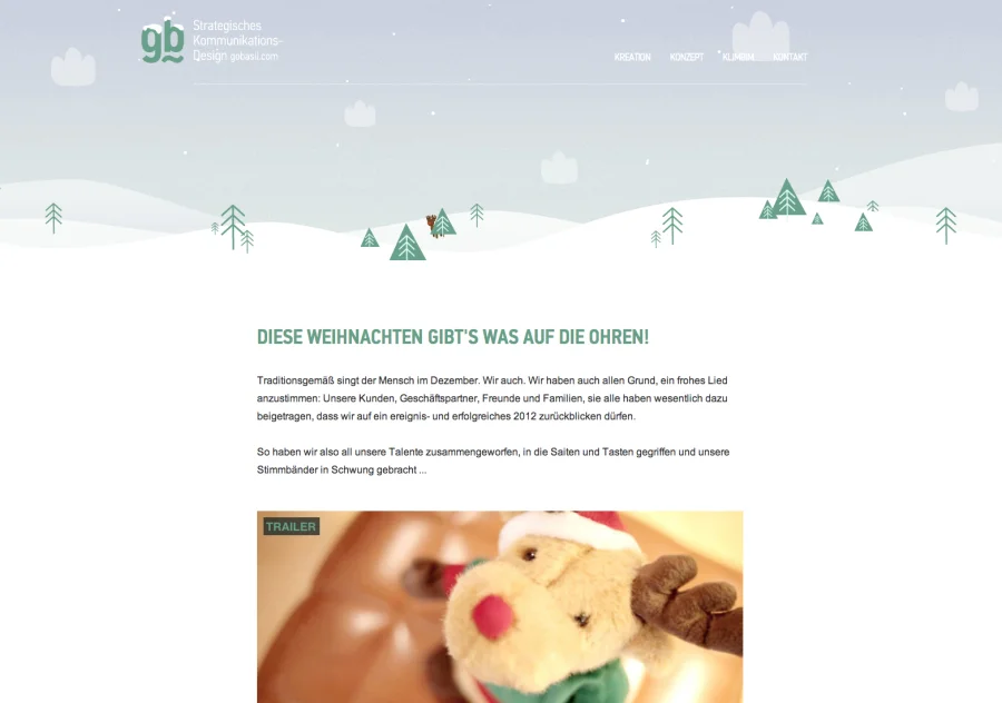 Go Basil hat das ganze Team ins Tonstudio verfrachtet und eine Cover-Version von »Rudolph the Red-Nosed Reindeer« einsingen lassen, sich dabei gefilmt und das ganze auf eine Microsite gepackt.