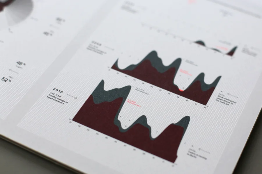 We obviously love Skype and we definitely love data graphics. What, then, makes more sense than designing a data graphic of our communication? All our Skype conversations and sent files from our first talk in 2008 to our last conversation on New Year’s Eve 2010 are visualized in this data graphic. To sum it up we wrote a total of 62,676 messages consisting of 2,531,434 chars.