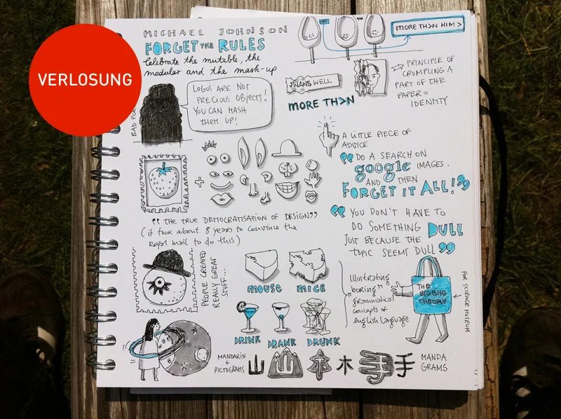 Verlosung: Eva stellt unseren Lesern ein handsigniertes Exemplar ihres Buches Sketchnotes zur Verfügung! Wenn Ihr gerne ein solches besitzen möchtet, hinterlasst bitte einen Kommentar bis Freitag, 27.5.2011 unter dem Post mit eindeutiger E-Mail-Adresse, damit ich den Gewinner danach auch benachrichtigen kann. Und jetzt: Happy Sketching!