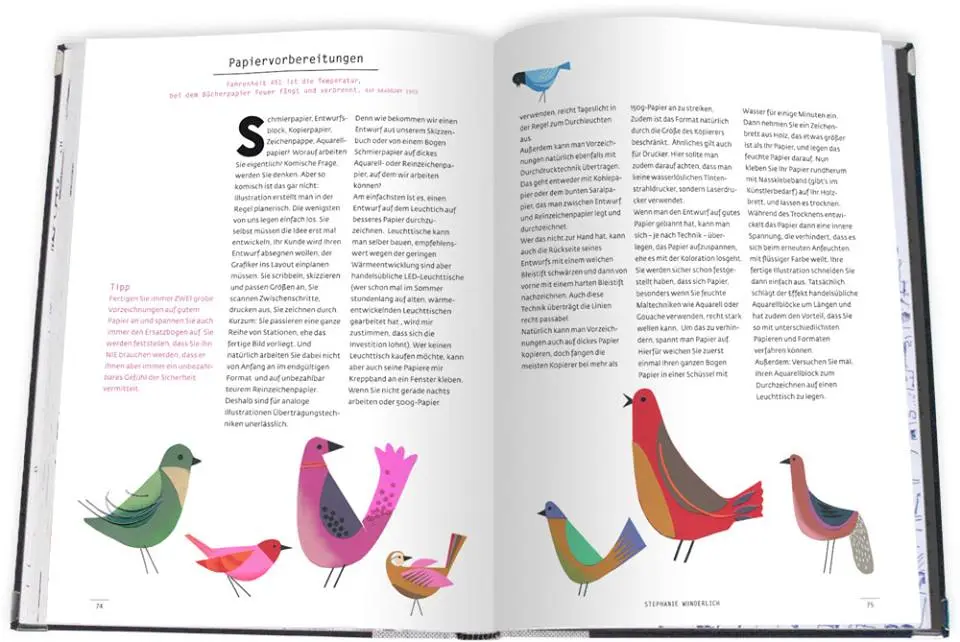 Nach Mut zum Skizzenbuch und Wasserfarbe für Gestalter ist das dritte Lehrbuch von Felix Scheinberger beim Verlag Hermann Schmidt Mainz erschienen. 100 Wege einen Vogel zu malen ist ein Lese- und Lehrbuch über Illustration.