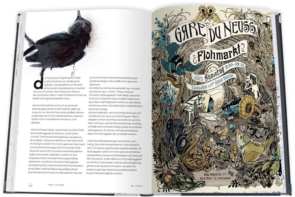 Das »Draußen« erweist sich oft ganz anders als das Studium: Schnell stellt sich heraus, dass man dort in der Regel nicht als erstes phantastische Romane illustrieren darf, sondern dass man dem Rätsel Kunde und seinen Wünschen recht ratlos gegenübersteht. Ich habe 100 Wege einen Vogel zu malen vor allem deshalb geschrieben weil ich Illustration liebe und weil ich nicht möchte, dass so viele großartige junge Talente durch vermeidbare Fehler um ihren Traumberuf gebracht werden.