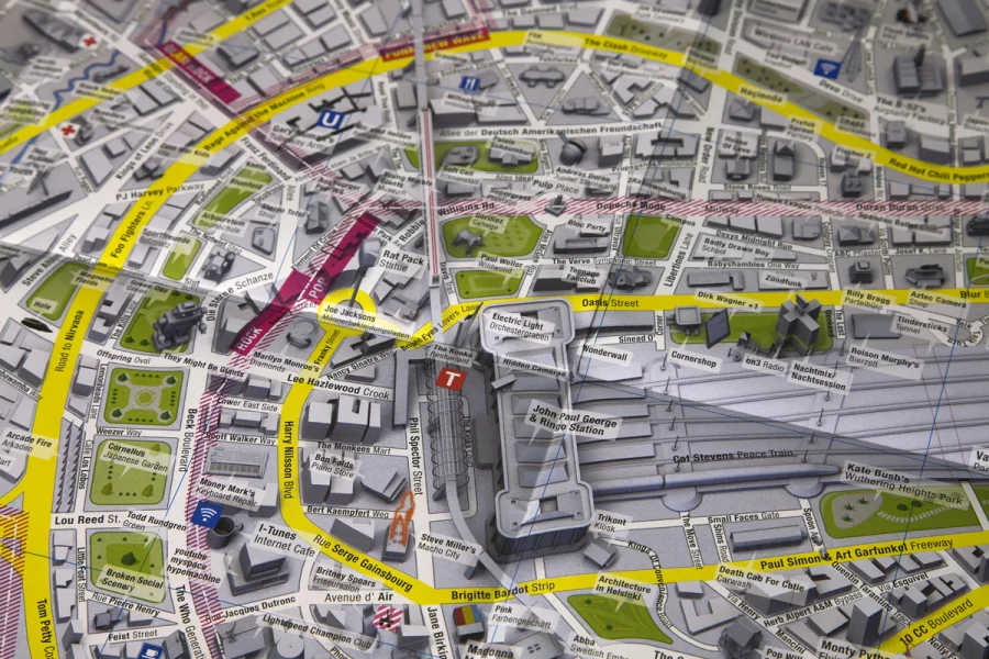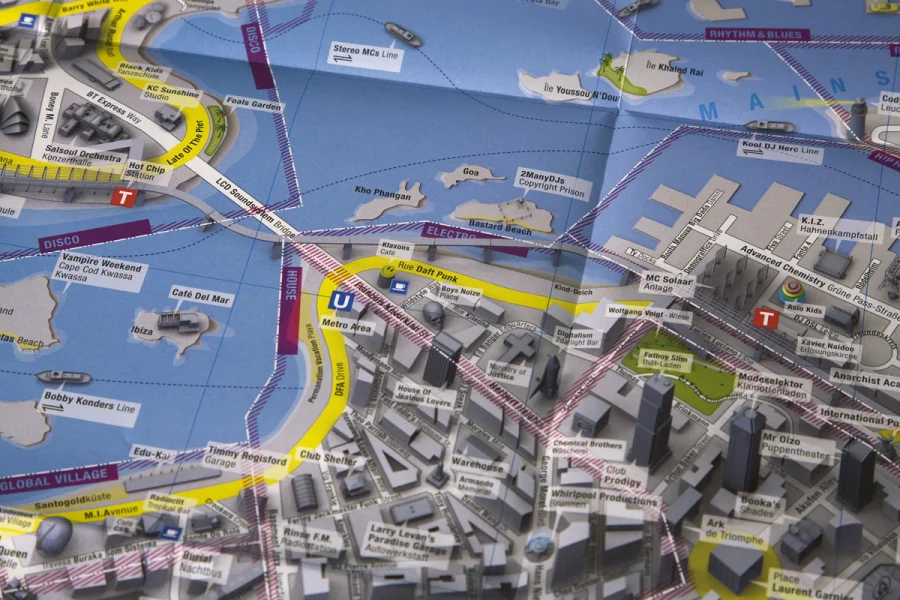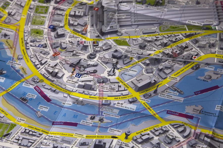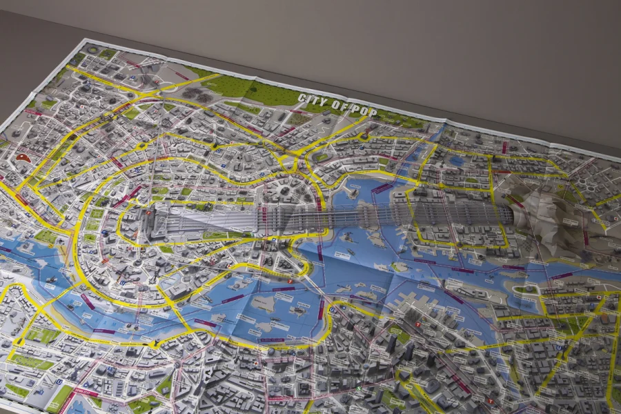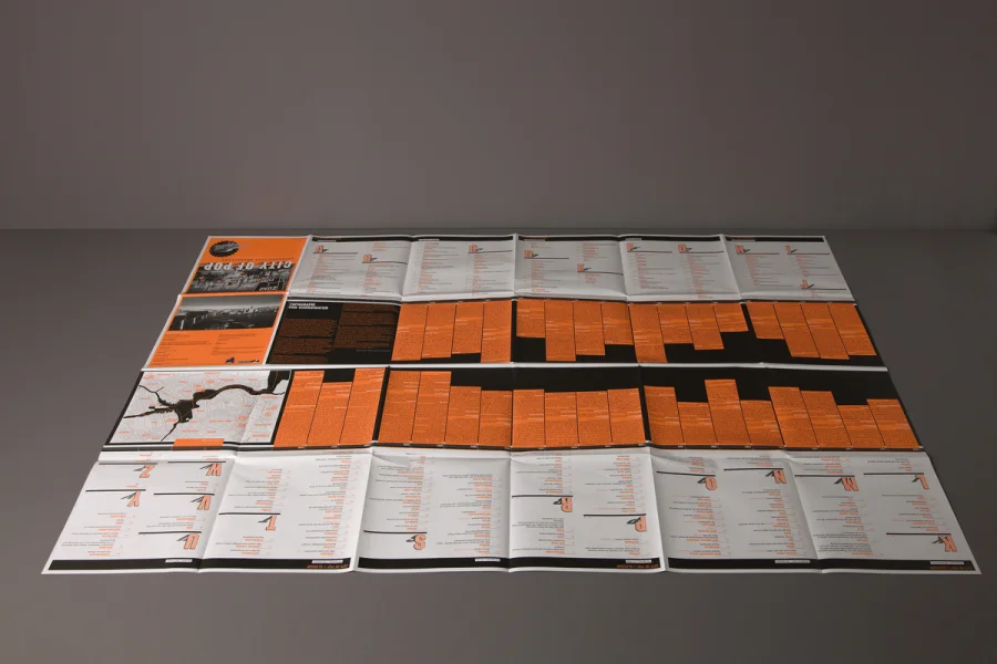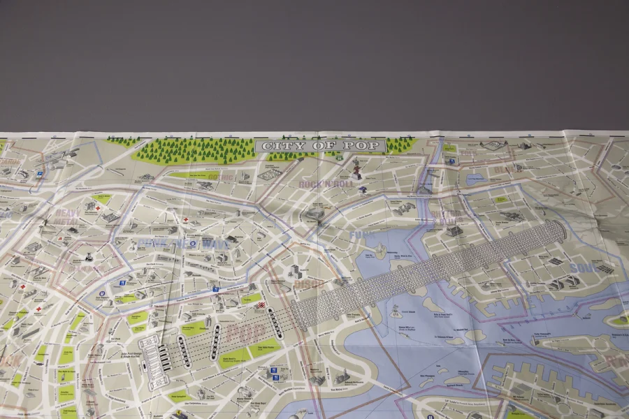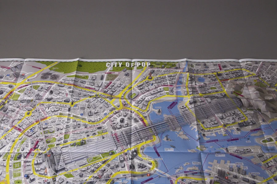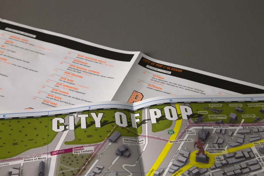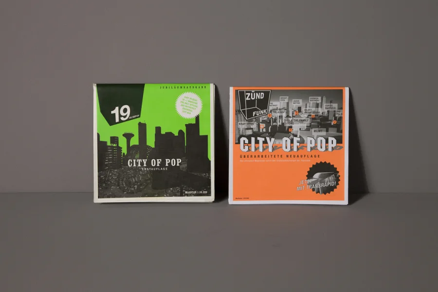 Die erste Ausgabe der City of Pop hatte über 800 Straßen und Plätze und über 350 individuelle, für die jeweiligen Künstler entwickelte Icons. Auf der Kartenrückseite waren die wichtigsten gesamtgesellschaftlichen Ereignisse in einem Zeitstrahl dargestellt. Zur City of Pop wurde ein On Air Spiel (Radiosendung) entwickelt.