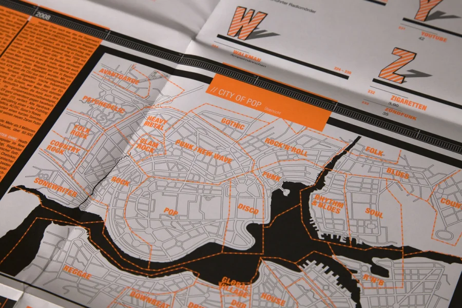 Der BR Zündfunk steht mittlerweile für über 35 Jahre Popkulturgeschichte. In enger Abstimmung mit der Redaktion entstand die Idee, dieses Wissen der popkulturellen Zusammenhänge in einer geeigneten Form zu präsentieren. Die Analogie einer Stadt eignete sich insbesondere um Verbindungen untereinander und die allgemeine Verortung in einem System erlebbar zu machen.