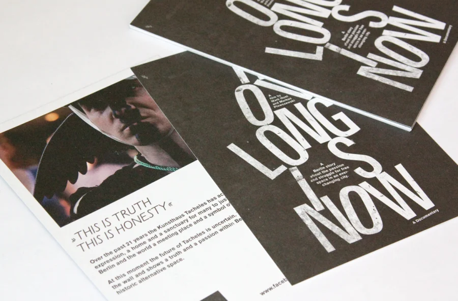 Unter dem Friendship-Remisendach entsteht ein neues Filmprojekt: Die Dokumentation über das Berliner Kunsthaus Tacheles “How Long Is Now”. Wir haben dazu das Key Visual für Plakate, Infomaterialien und Spendenaufruf entwickelt.