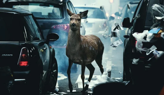 Eine Parabel über die Ausbeutung der Natur: Ein Polizeiwagen steckt mitten im New Yorker Feierabendverkehr, als plötzlich ein Reh vorbeihuscht. Irritiert steigt der Polizist aus und sucht nach dem verschreckten Tier, das sich in den Großstadtdschungel gewagt hat. Das Reh als Pars pro toto der Natur schickt eine Botschaft an die Menschen: „We miss you“ flüstert es.