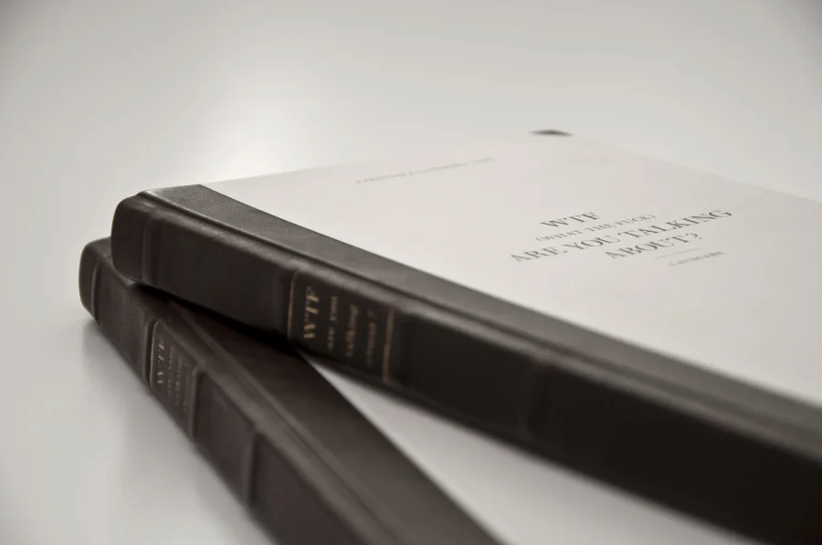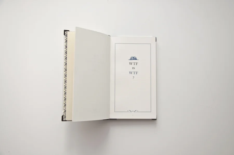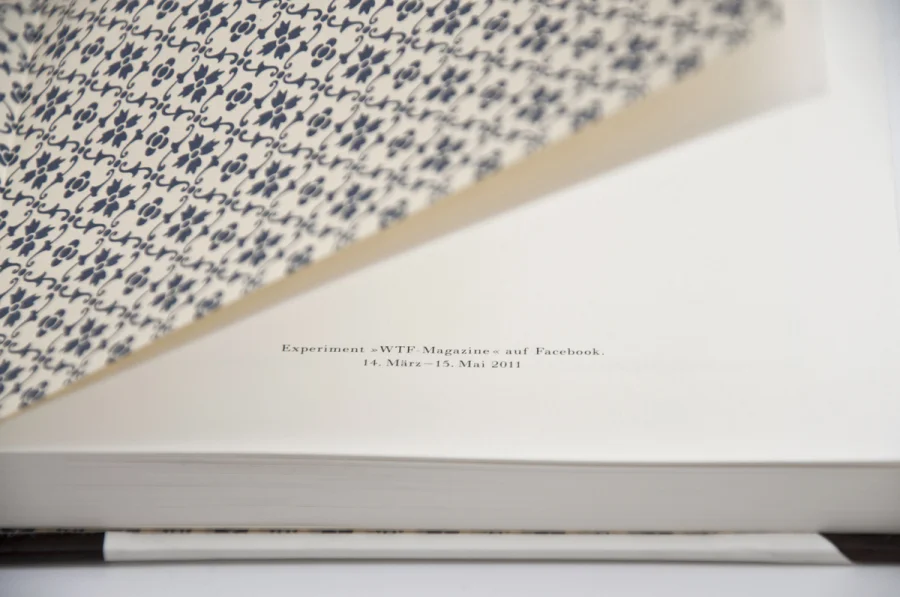 Das Spiel mit der Veränderung der Wahrnehmung von schriftlichen und visuellen Inhalten, durch die Wahl des Präsentationsmediums war die Kernaufgabe, die wir uns mit WTF gestellt haben. Massengenerierte Webinhalte, die aufgrund ihres flüchtigen und schnelllebigen Charakters qualitativ geringer wahrgenommen werden, erhalten durch die Übertragung in ein nachhaltiges Medium eine scheinbar höhere Wertigkeit. Durch die Außengestaltung des Buches, als antiquarische Rarität, wird so augenscheinlich auch dem Inhalt eine größere Bedeutung beigemessen.