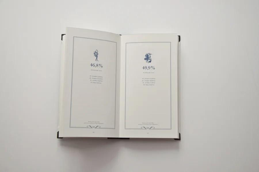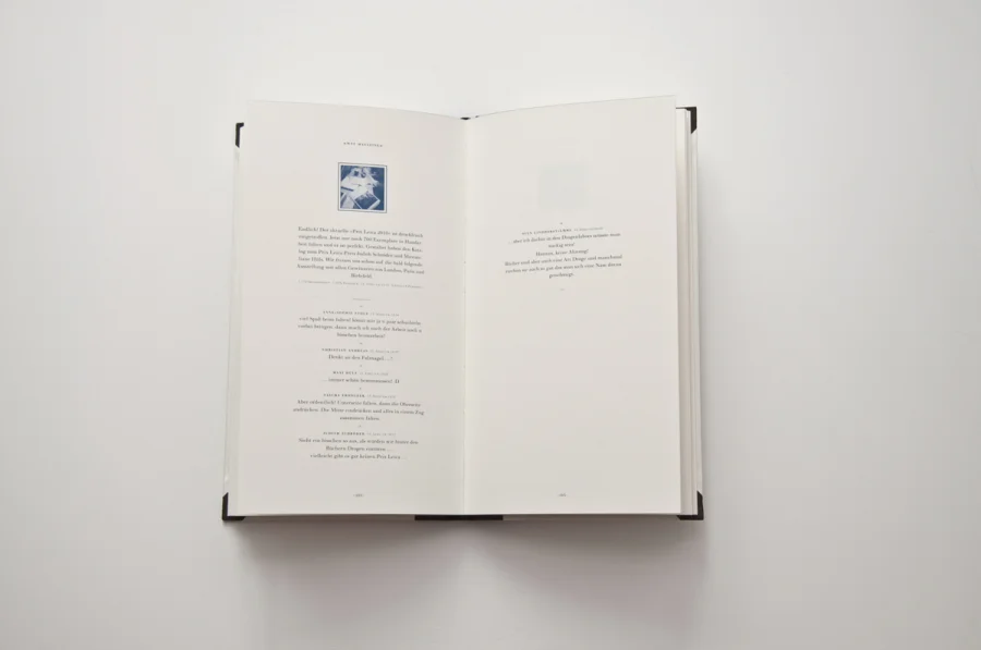 Die von den Mitgliedern verfassten Äußerungen wurden bezüglich ihres Inhalts nicht verändert, sondern so übernommen, wie sie ihre Autoren in der Flüchtigkeit des Moments verfasst haben. Erst im Zusammenspiel mit der typografischen Gestaltung der Kurztexte und der klassisch anmutenden, hochwertigen Erscheinung des vorliegenden Buches werden die kurzen Textpassagen der Facebook-Seite qualitativ aufgewertet und mit Nachhaltigkeit versehen.