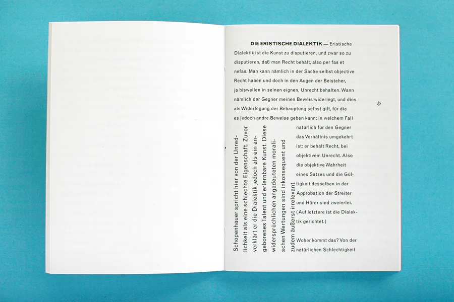 Typografische Interpretation des Textes “Die Kunst Recht zu behalten” von Arthur Schopenhauer durch einen Besserwissers, Aufarbeitung von Kunstgriffen und ein Video.
