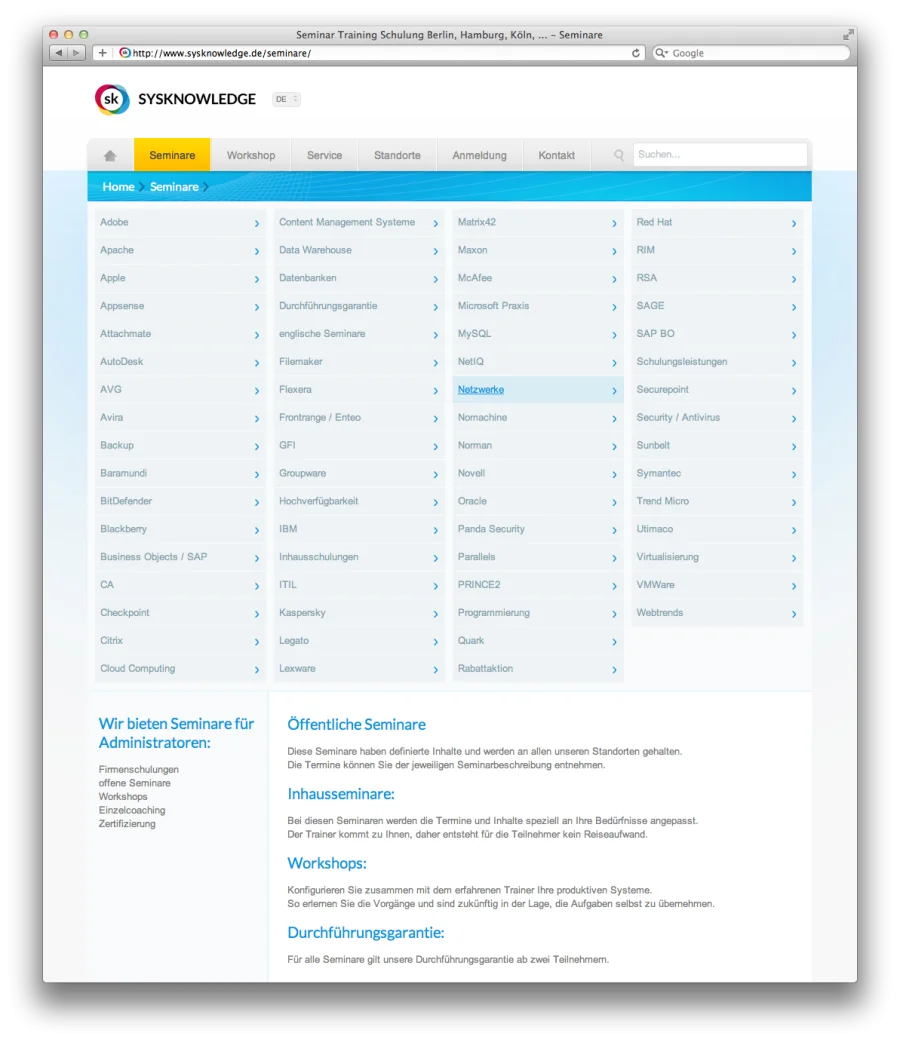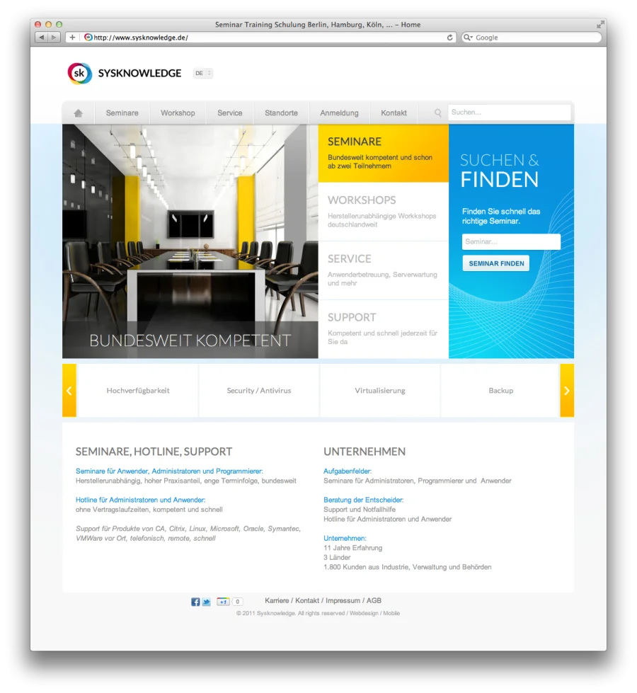 Sysknowledge ist der Spezialist für Groupwarelösungen auf Basis von Microsoft Exchange und Novell GroupWise. Corporate Identity Entwicklung, Web & Mobile Design, Entwicklung auf Basis von TYPO3.
