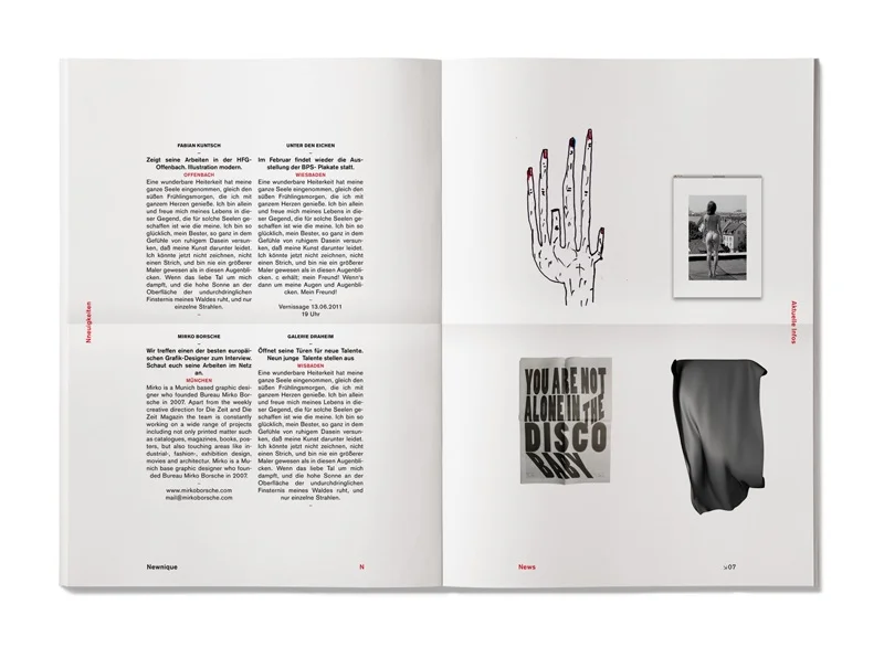 Entwurf für die neue Studiengangszeitung des Fachbereichs Gestaltung an der Hochschule RheinMain. Enthält das kleiner gehaltene Werkblatt, das die aktuellen Studien- und Abschlussarbeiten vorstellt.