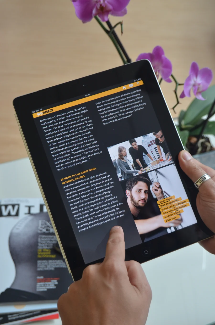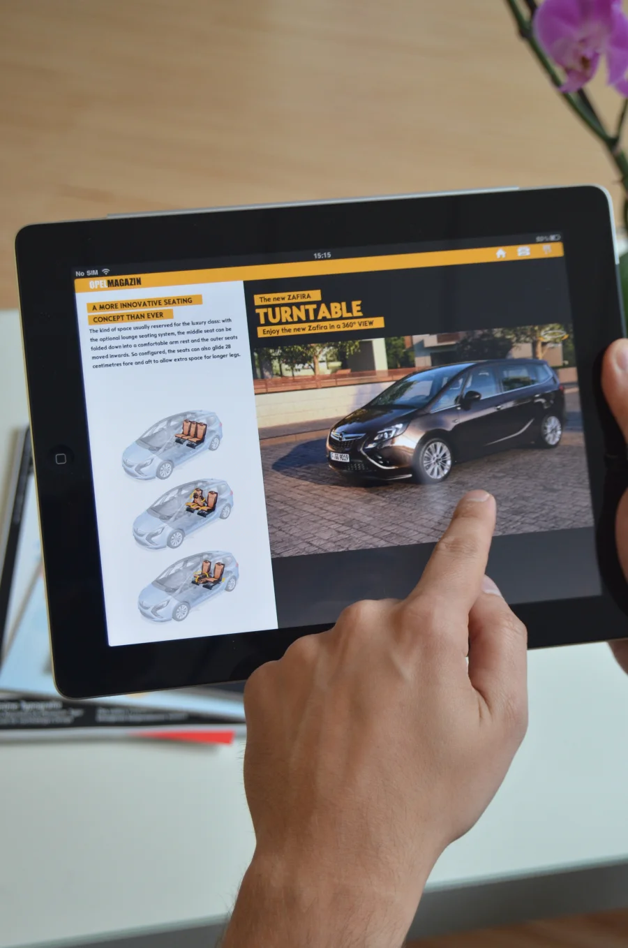Die Frankfurter Kreativen von MRM Worldwide Deutschland griffen das überarbeitete Opel Corporate Design (CD) auf und interpretierten es für die iPad-Ausgabe des Kundenmagazins.