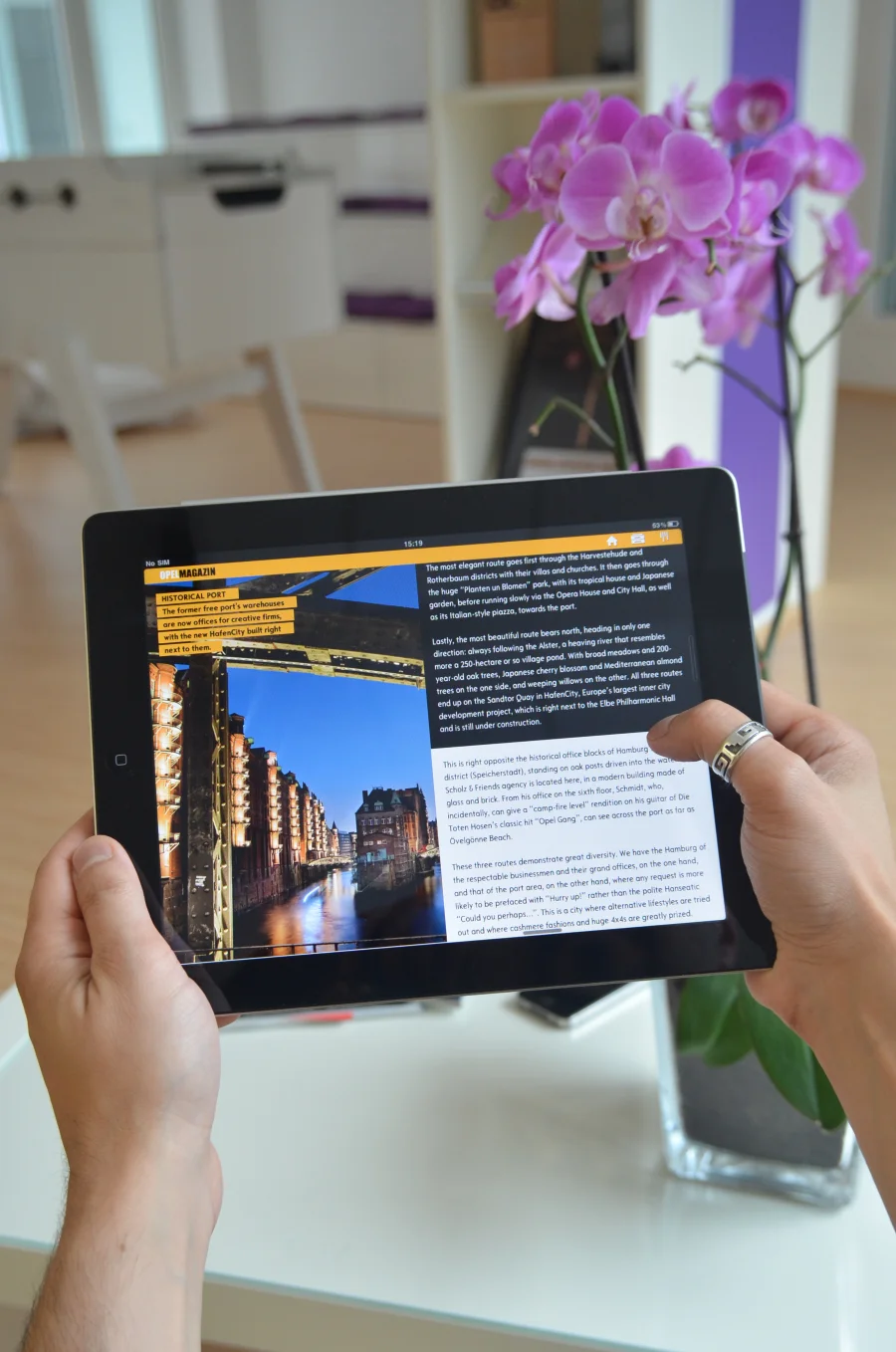 Ergebnis ist ein optisch und technisch ansprechendes, flexibles Template-System, das durch zusätzliche Inhalte und vertiefende Informationen eine intensivere User Experience ermöglichen. MRM Worldwide in Frankfurt konzipiert und realisiert das iMag und erweitert es um interaktive Elemente, wie zum Beispiel einer interaktiven 360 Grad Panorama Ansicht des Insignia auf Basis des Gyroskop, und native Applikationen, um die User mit interaktivem Storytelling an die Marke zu binden.