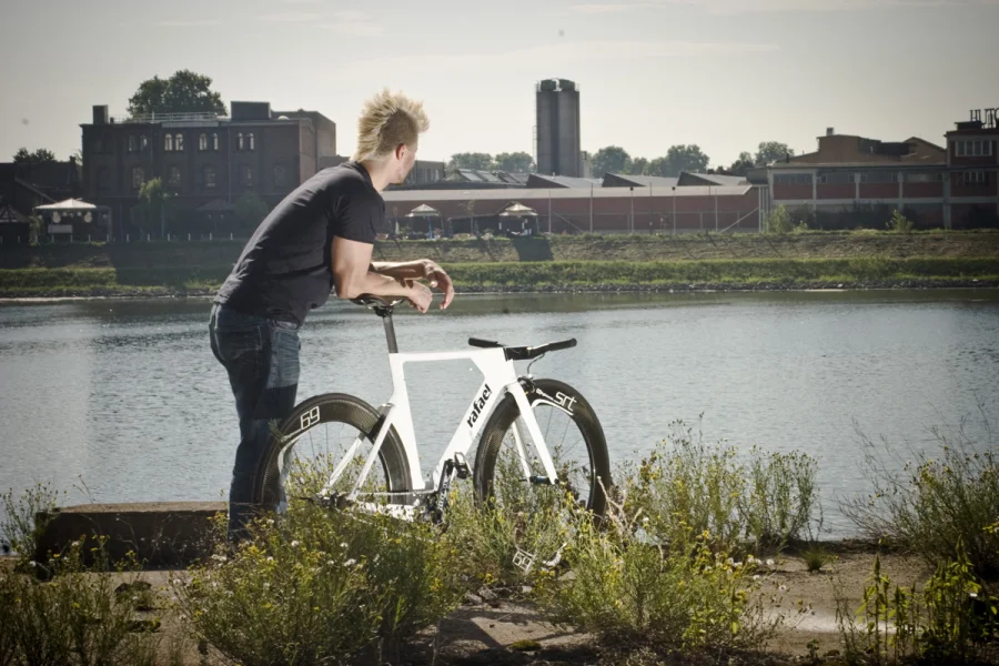 Die Fahrräder von rafael sind allesamt handgefertigte Einzelstücke. Die Räder bestechen vor allem durch ihre extravagante Form, die Aerodynamik und ihre Leichtigkeit auf Grund der Verarbeitung von Carbon.
