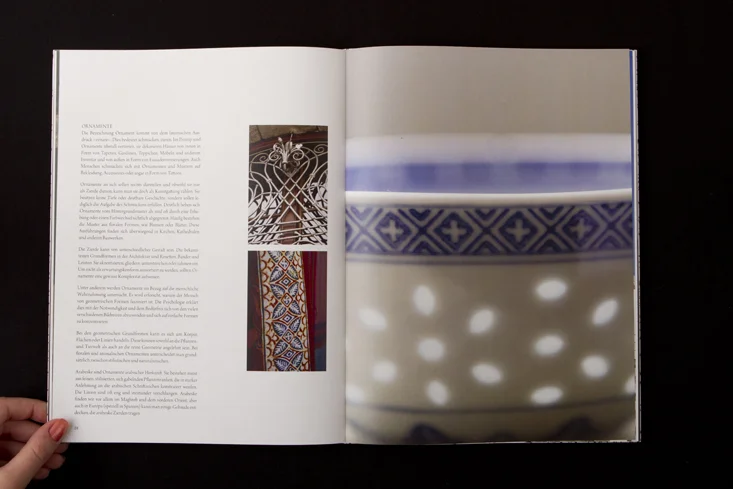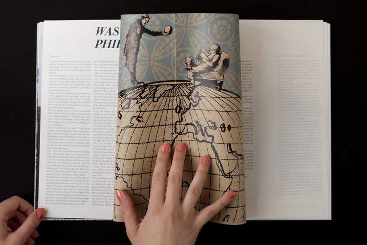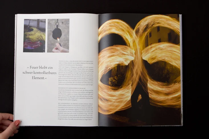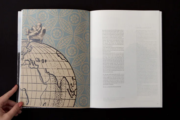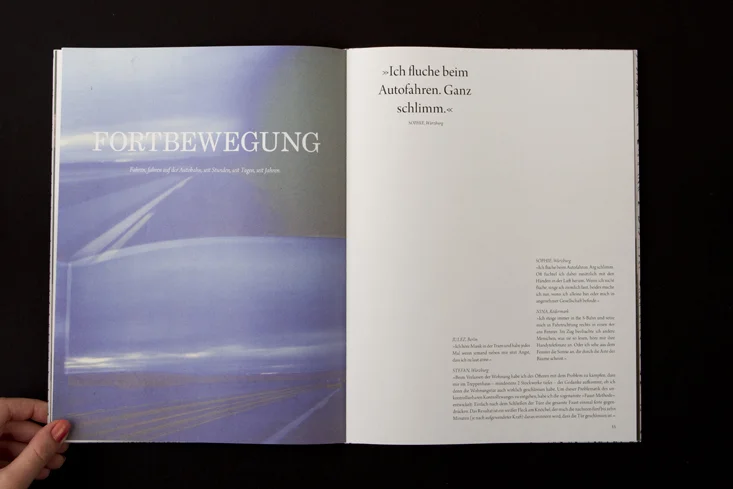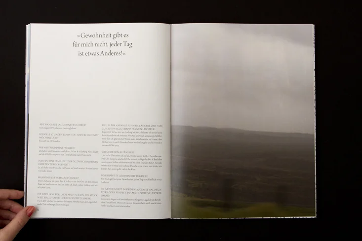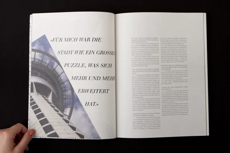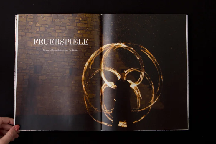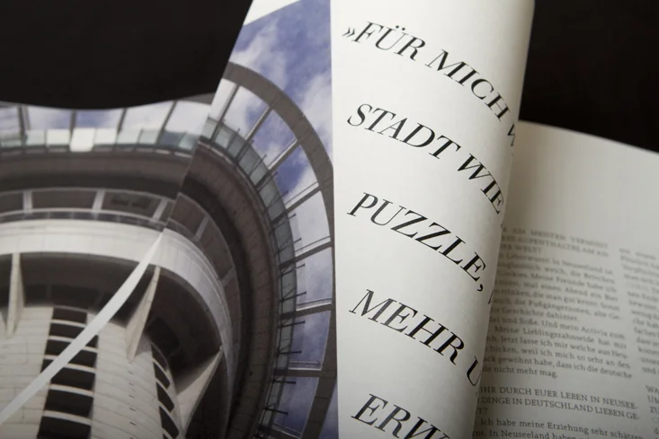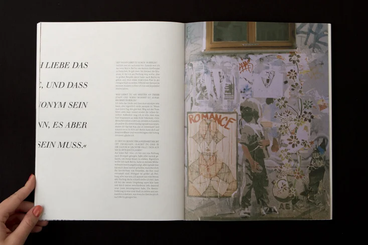 Die Arbeit besteht aus zwei Magazinen, die durch eine doppelseitige Klebebindung zusammengefügt sind. Denn genau wie die Themen Gewohnheit und Neues entdecken unmittelbar miteinander verbunden sind, sind auch die beiden Magazine als solches Wechselspiel zu verstehen.