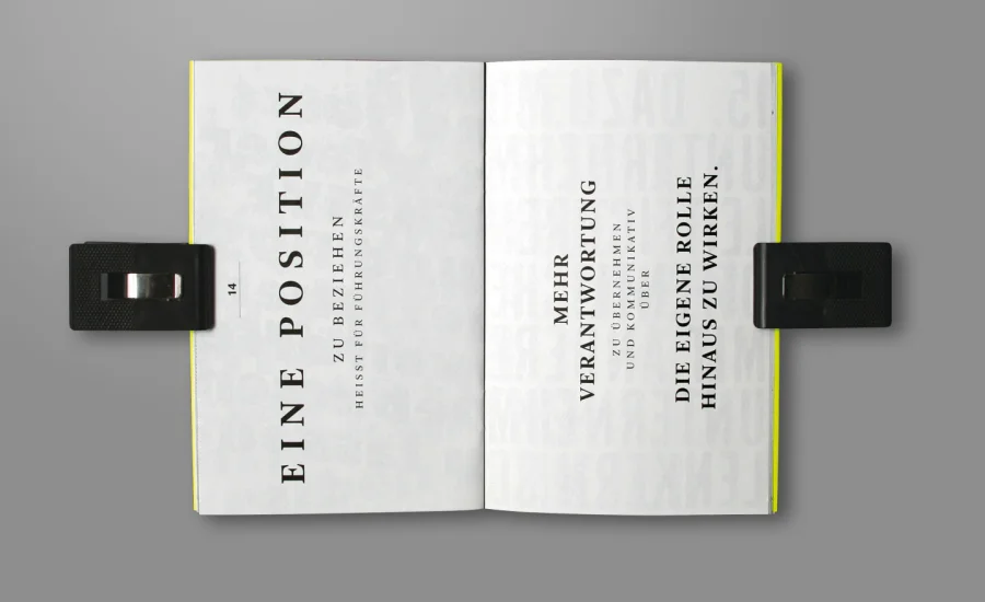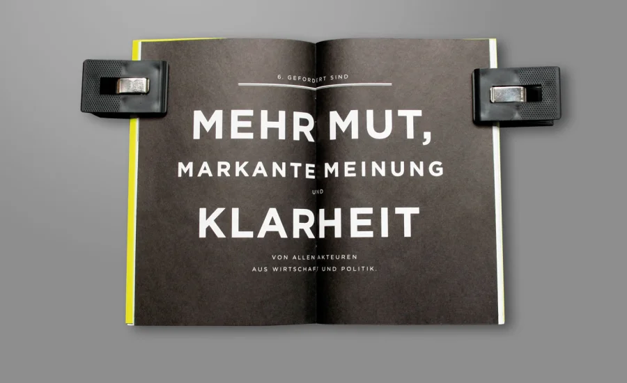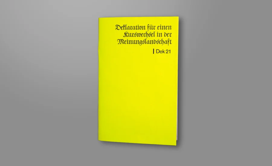 Unter dem Leitgedanken „Schärfen statt glätten“ steht fischerAppelt, relations für einen Kurswechsel in der Meinungslandschaft und stellt zur Gründung 21 Thesen für eine schärfere Kommunikation auf. LIGALUX entwickelte hierzu die Broschüre mit dem Namen „Dek 21“, in der jede der 21 Thesen individuell gestaltet wurde.