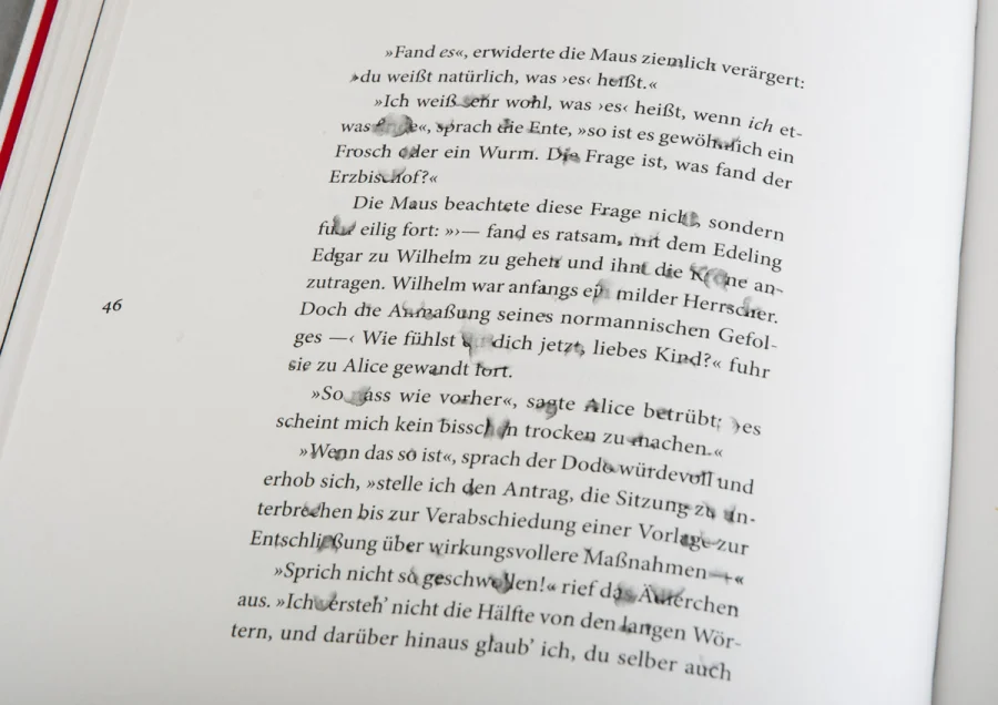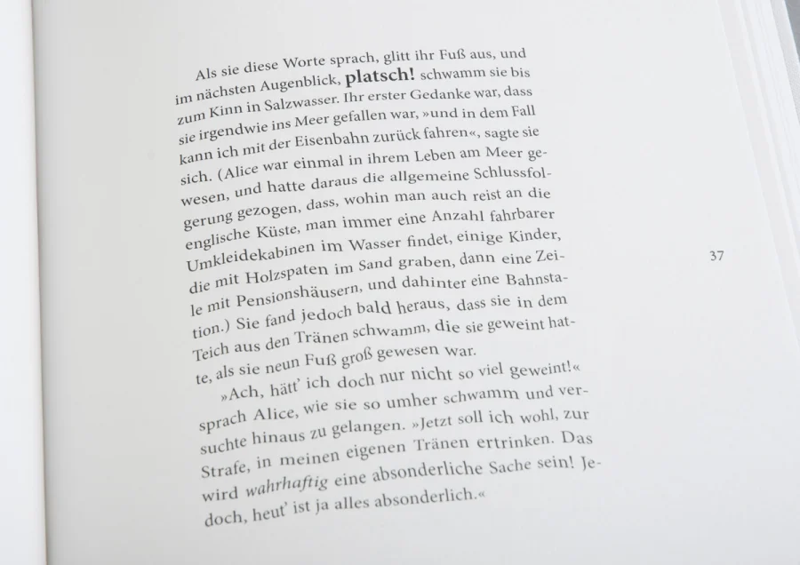 For my bachelor’s thesis I created a new edition of Lewis Carroll’s »Alices Adventures in Wonderland«. The design of the book emphasizes the story visually.