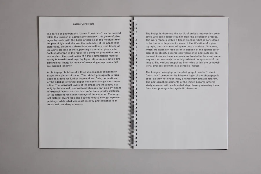 Book for the artist Christiane Feser about their photoseries “Latent Constructs”.