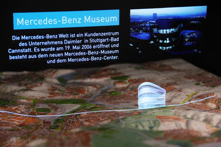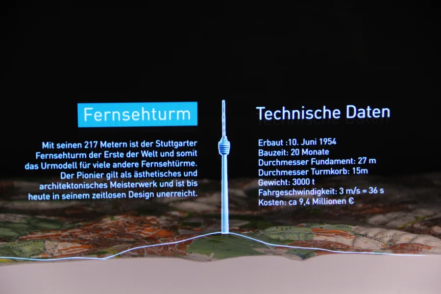 Move a transparent mirror in a holographic showcase and get experienced by significant buildings and landmarks of stuttgart. This update of the “Pepper’s Ghost Effect” includes interactive animations as well as datavisualisations. Thereby you can combine the physical with the digital world which can be especially used in exhibitions and interactive installations.