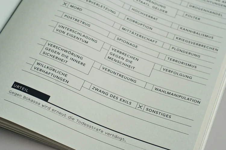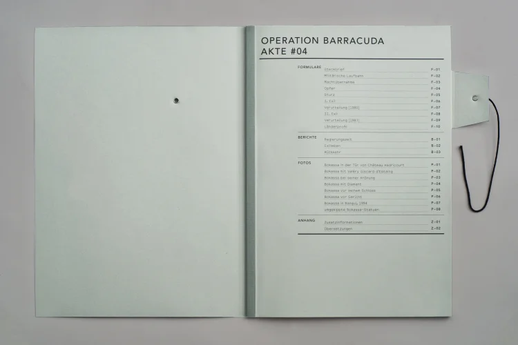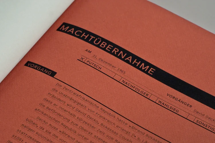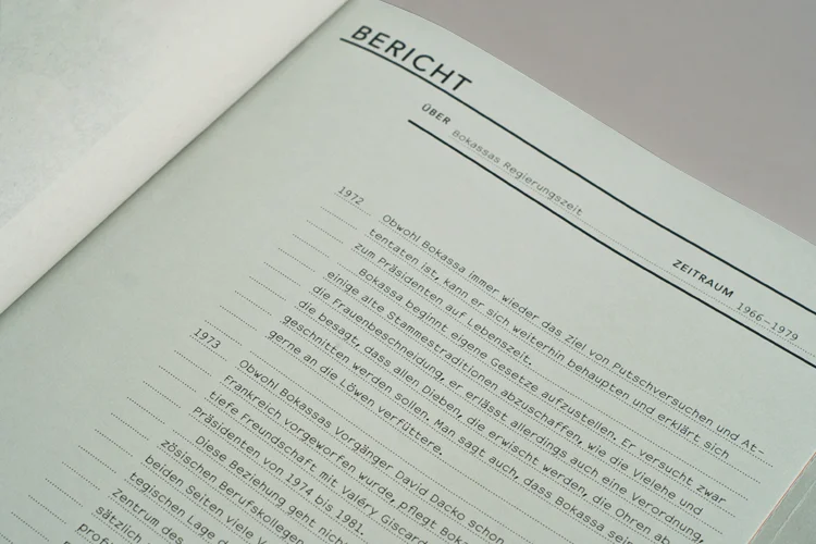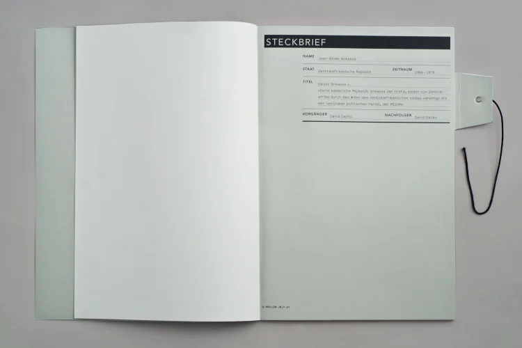In my bachelor thesis “Diktatoren im Ruhestand” I dealt with despots who were ousted from their position as brutal country leaders but nonetheless lead a comfortable life in exile. I chose to present my findings in files as it is a tool which is/was often used in politics and dictatorships. The files’ content comprise the lives of the dictators in neutral and impersonal forms, following their careers from the beginning to its end. With this work I want to point out how much injustice and indifference was and is still applied when dealing with former despots.