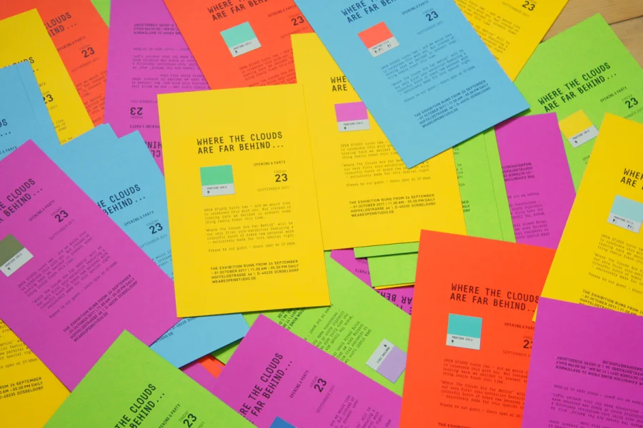 “Where The Clouds Are Far Behind …” ist unsere erste offizielle Einzelausstellung – ein bunter Strauß an freien Arbeiten rund um das Thema Farbe, die exklusiv für diesen speziellen Abend entstanden sind. Come in – we’re open …