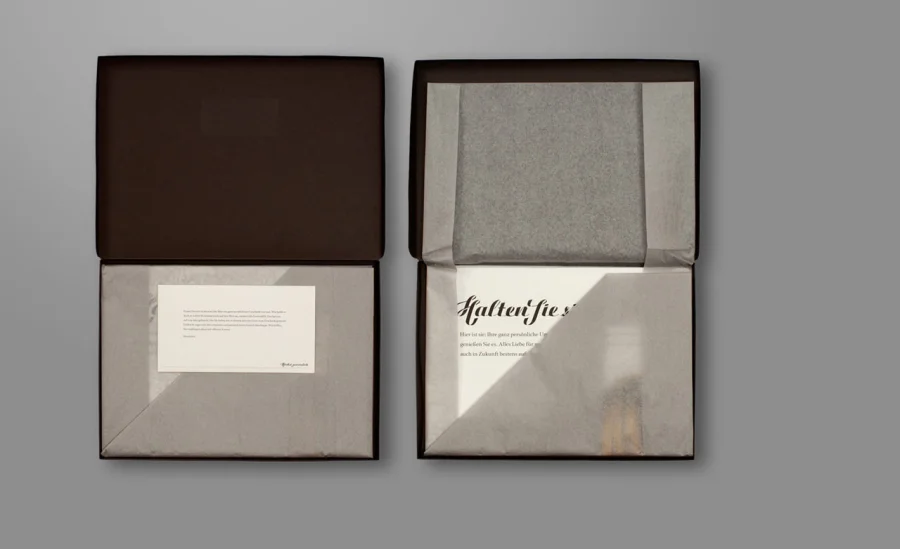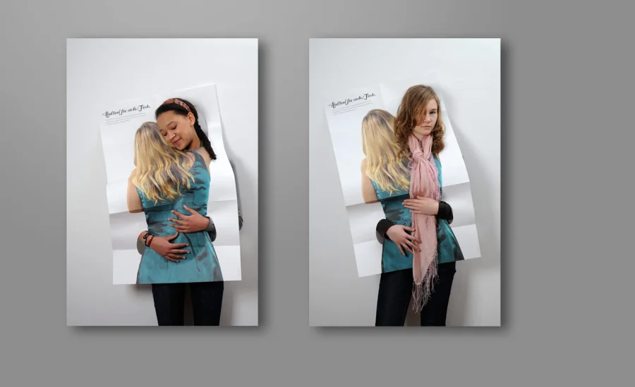 Und zwar in Form eines Posters, in hochwertigem Seidenpapier eingeschlagen und in exklusiven Kartons verschickt. Die Verpackung gleicht der von Lingerie, sehr dezent und privat, genau wie die Umarmung selbst. Dem Karton ist eine Karte mit persönlichen Grüßen beigelegt, die über den Hintergrund des Geschenks aufklären. Wer das Poster entfaltet, kann seine persönliche Umarmung entgegennehmen.