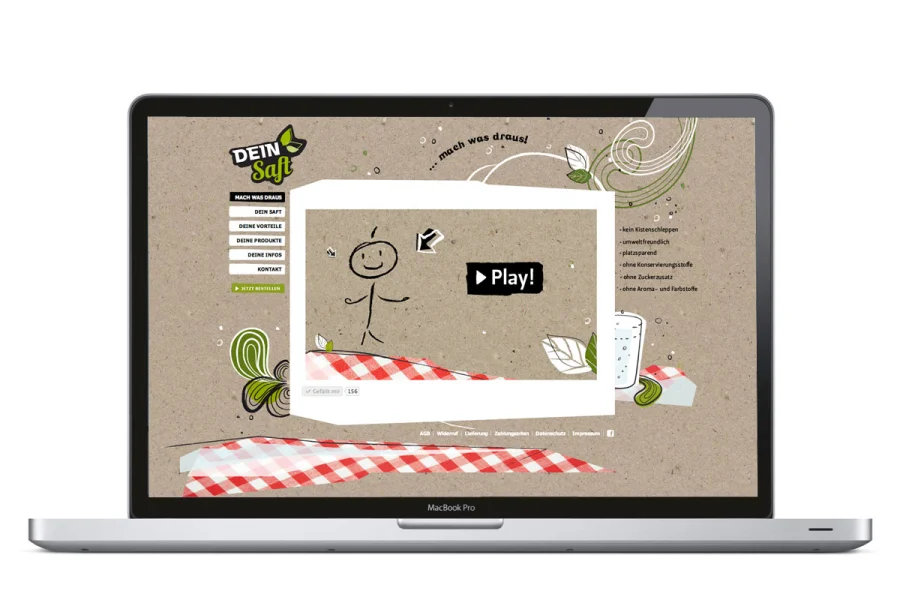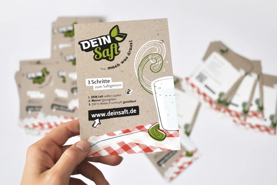 Für das Startup “DEIN Saft” entwickelte das Designbüro Studio Kniften das komplette Marken- und Designkonzept. Neben der Markenpositionierung entstanden Logo, Claim und Geschäftspost, Umverpackung, sowie Onlineauftritt, Facebookanwendungen und weitere Kommunikationsmittel.