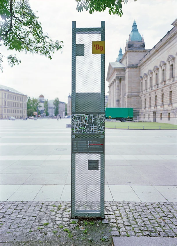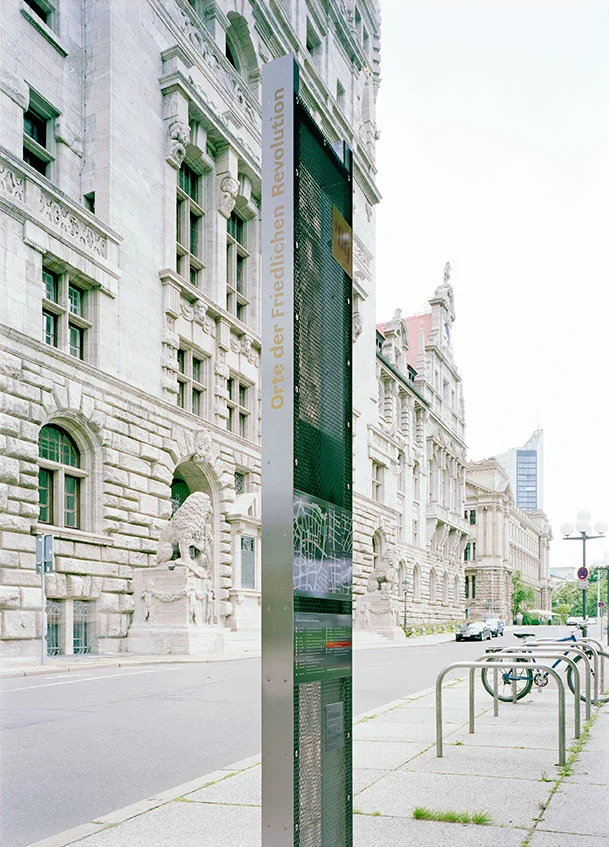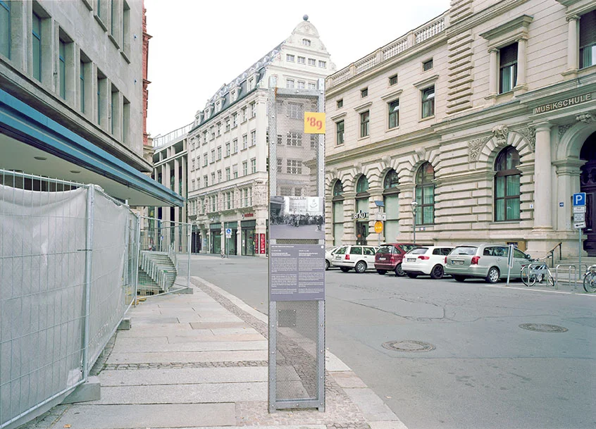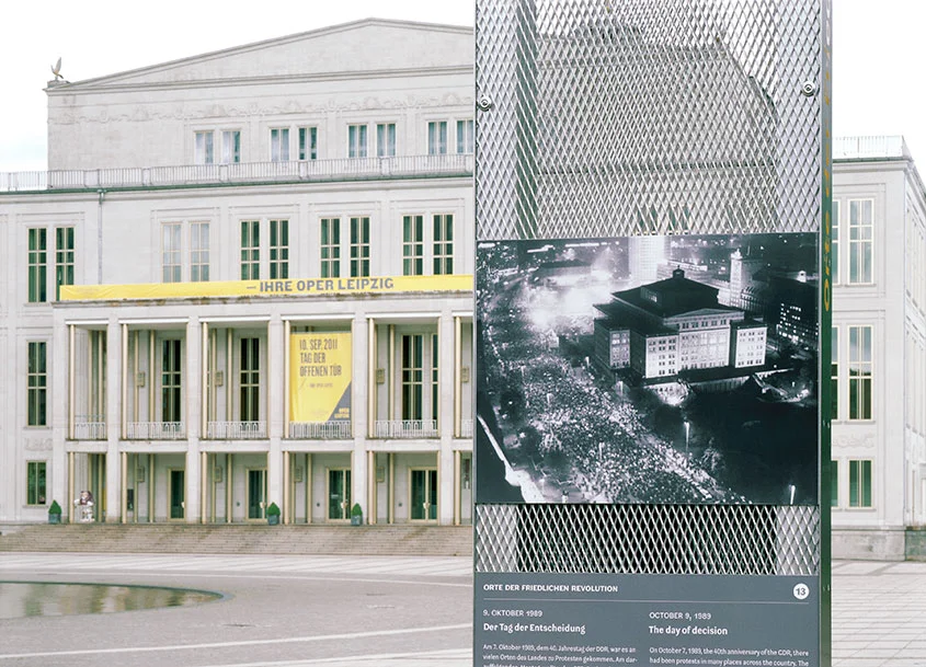 Die Stelenausstellung „Orte der Friedlichen Revolution“ führt Sie im Leipziger Stadtraum zu 20 Originalschauplätzen des demokratischen Aufbruchs 1989/90, an denen bedeutende Aktionen stattfanden, die zum Sturz der SED-Diktatur beitrugen.