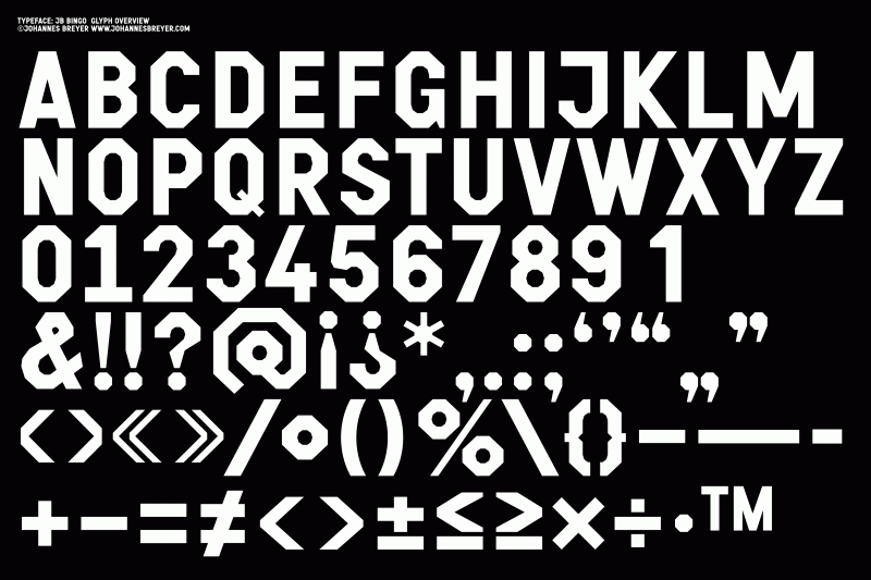 Bingo is my interpretation of a squared typeface I came across browsing through old specimen books, and developed further with the help of conceptual-typedesign-heavyweights NORM.