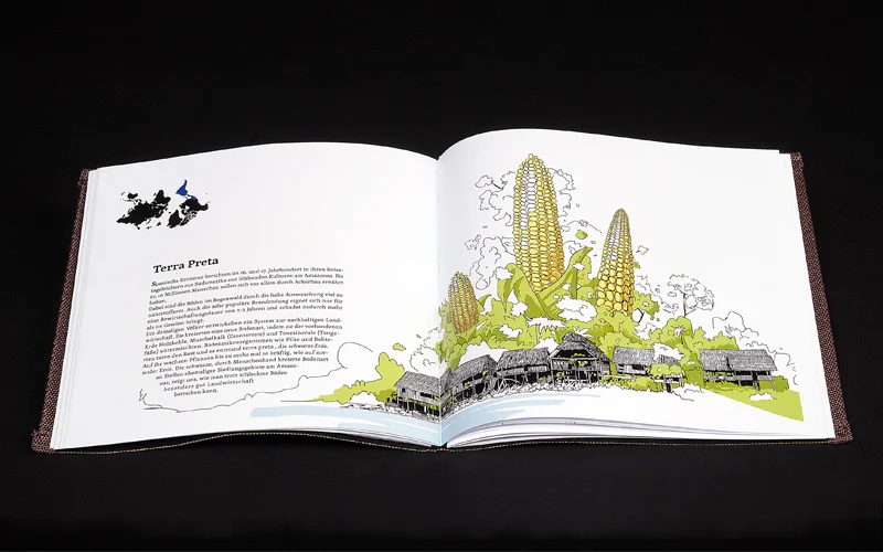 In “180°” wird diese Drehung in die Tat umgesetzt. Der Leser wird aufgefordert, das Buch ab einer Stelle zu drehen. Dadurch muss man die Seiten ungewohnt blättern, sich auf etwas Neues einlassen.