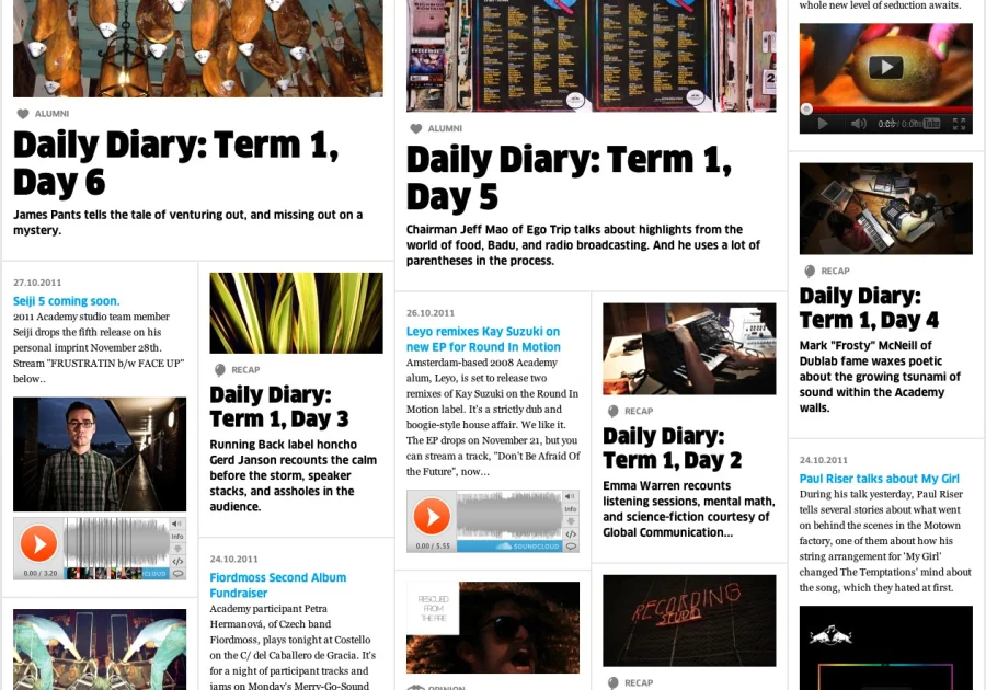 Edenspiekermann hat für die Red Bull Music Academy einen neuen Online Auftritt gestaltet. Die Red Bull Music Academy ist eine internationale Musik-Workshop-Reihe, die bereits sei 1998 talentiertem Nachwuchs die Möglichkeit gibt, sich mit Musikgrößen aus aller Welt auszutauschen.