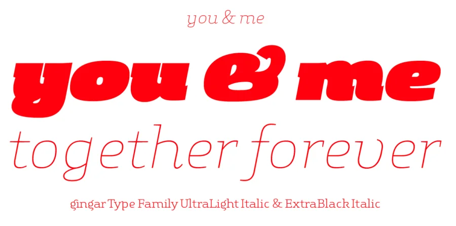 I proudly present Gingar, a warm and friendly headline font with Slab Serif touch. A good mixture of the playful and the classic. A proper font. Included: swash-characters and ligatures. Gingar offers a wide range between Ultralight & Extrablack, 30 styles, Italics included.