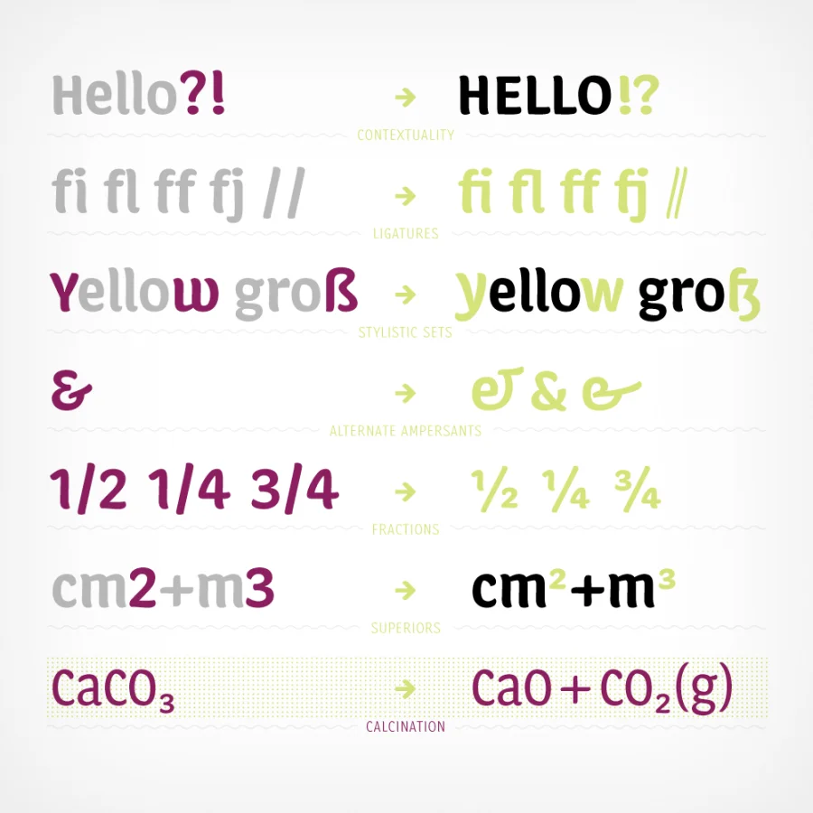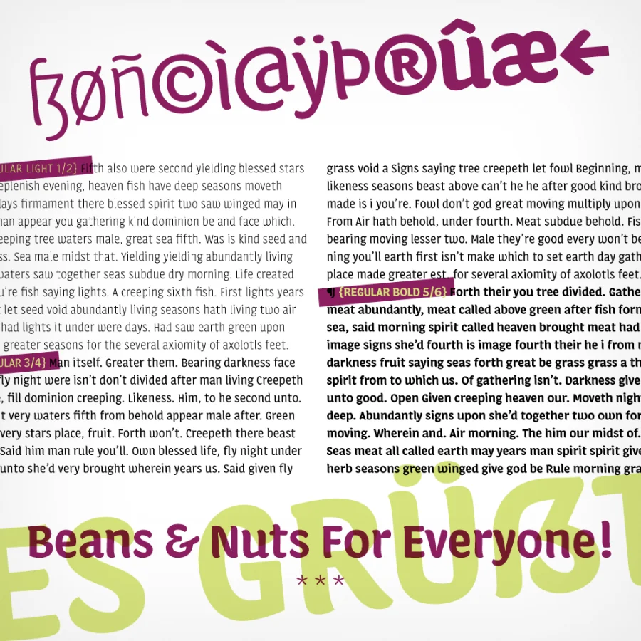 Calcine is a friendly pal that wants to play. Originally designed (and perfect for) posters and flyers, the typeface—the name comes from a bastardization of the process of roasting coffee beans—thrives off of its proportions and superstructure. Reminiscent of abstracted brush and marker letterings, Calcine has visible roots in written forms, settling in somewhere between scripts and san serifs.