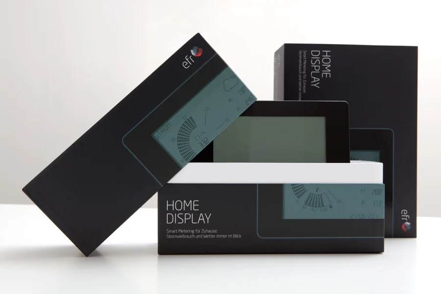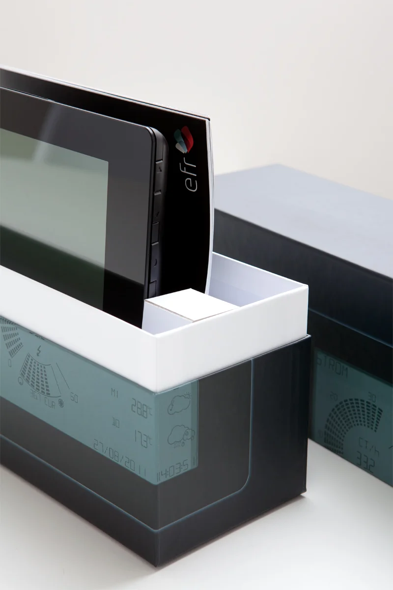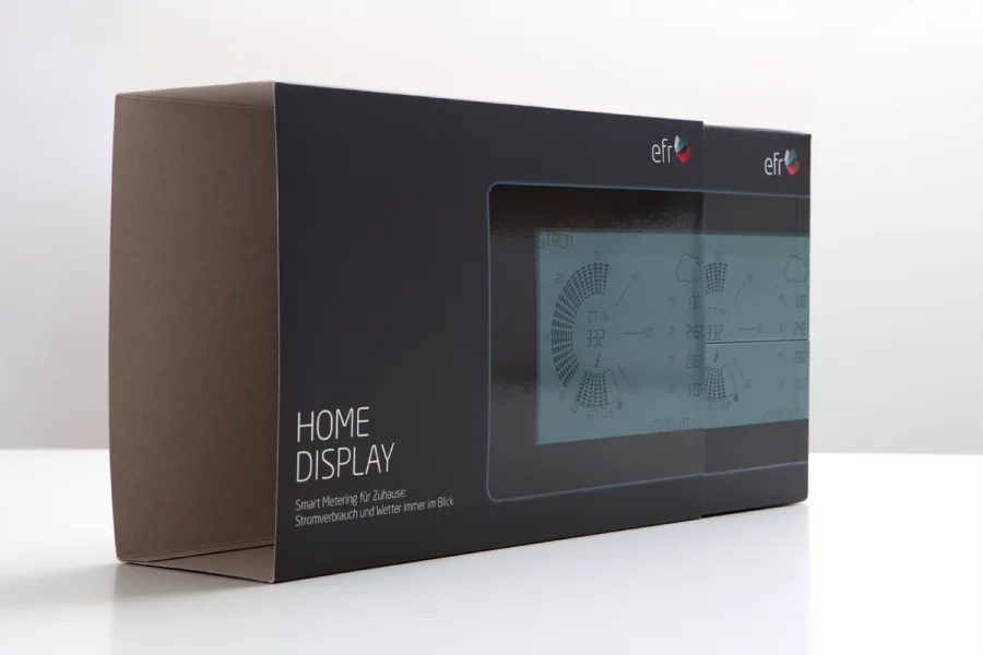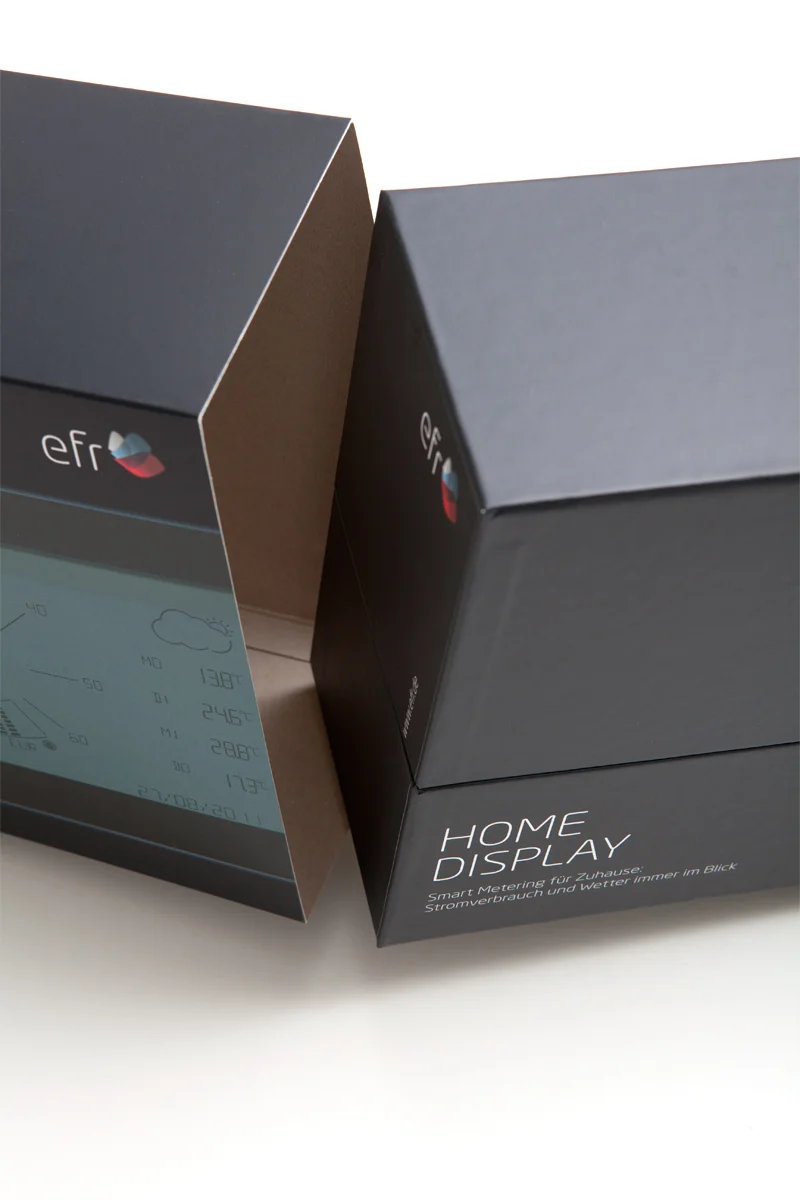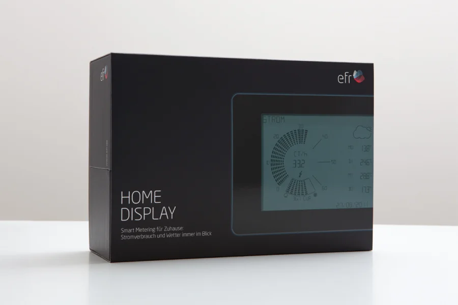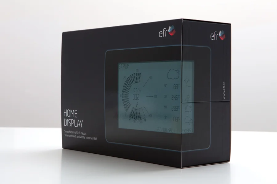 Das EFR HomeDisplay macht den Energieverbrauch für den Endkunden greifbar. Leistungsdaten und Zählerstände werden direkt vom Smart-Meter aus dem Zählerkasten ins Wohnzimmer übertragen. Im Display werden die Daten aufbereitet, übersichtlich dargestellt und auch für Laien verständlich in verschiedenen Einheiten präsentiert.