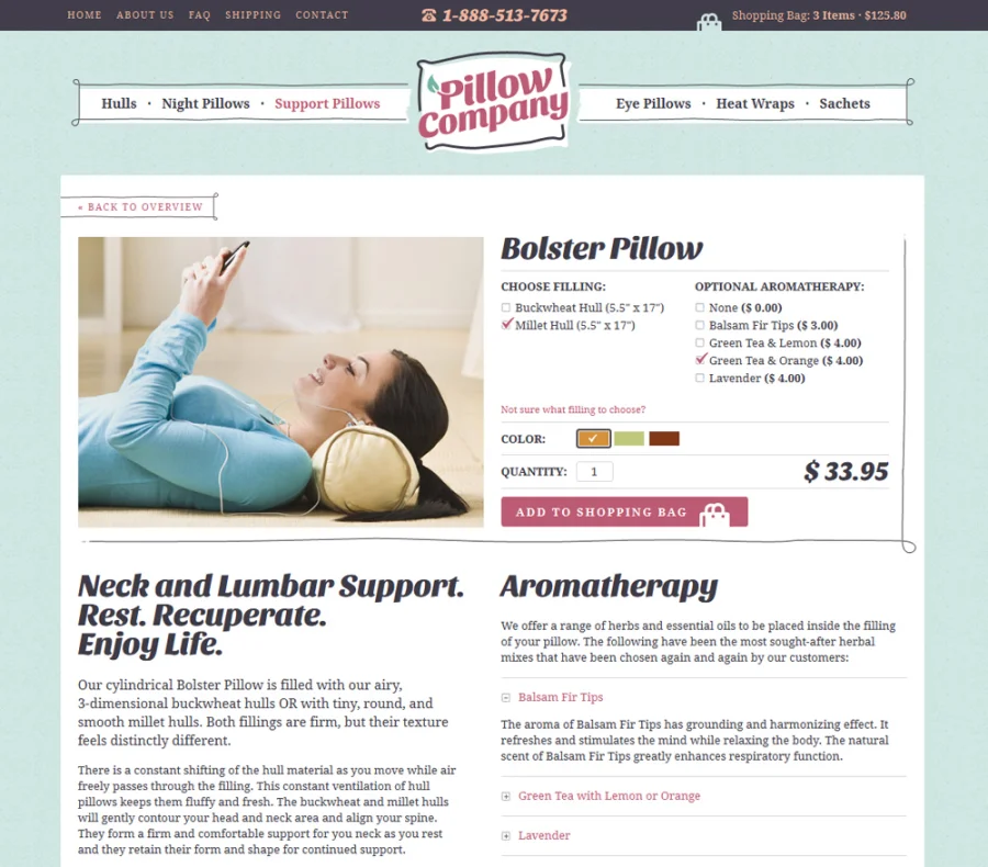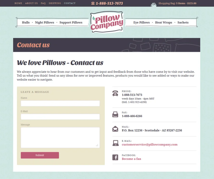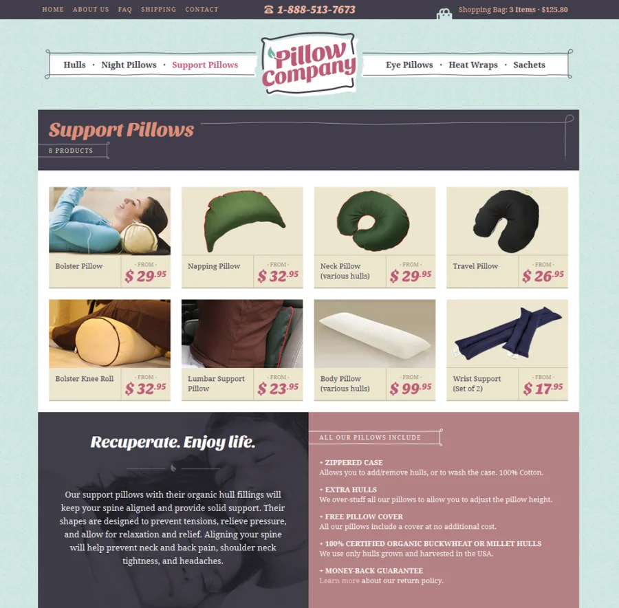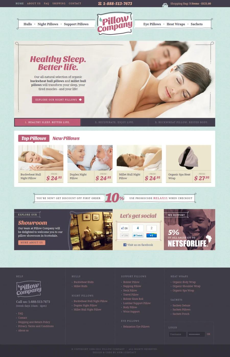 Die Pillow Company ist einer der führenden Hersteller von biologischen Kissen in den USA. Der neue Onlineshop wurde samt Logo von der Internetagentur web://contact überarbeitet und auf die speziellen Anforderungen der Artikel zugeschnitten.