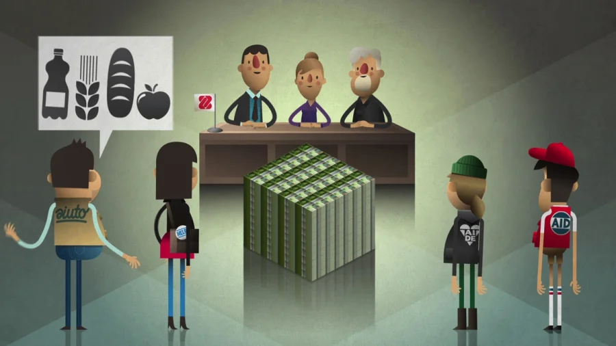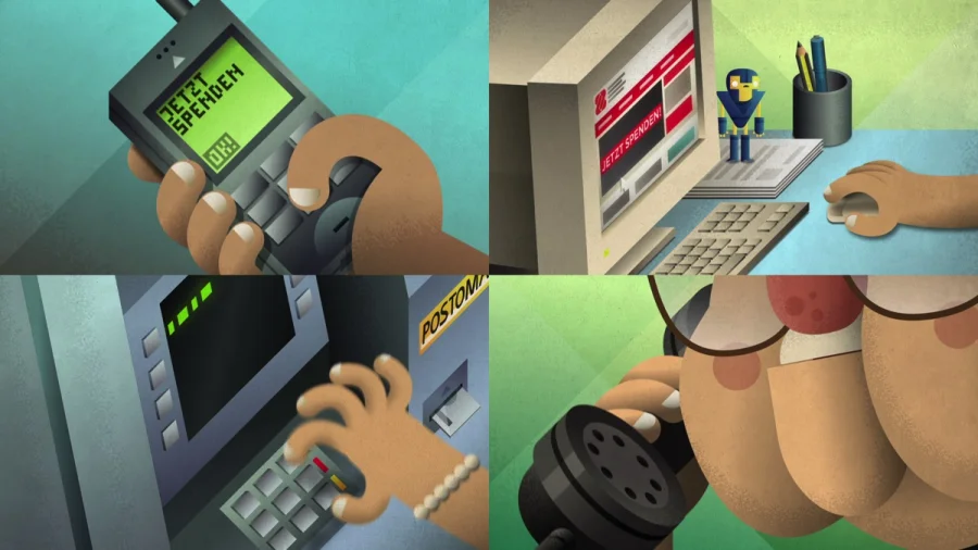 Das Animationsvideo illustriert, wie die Schweizer Stiftung „Glückskette“ in Zusammenarbeit mit Partnerhilfswerken Spendengelder für Hilfsbedürftige in Krisengebieten einsetzt.
