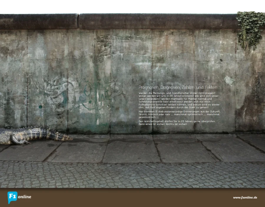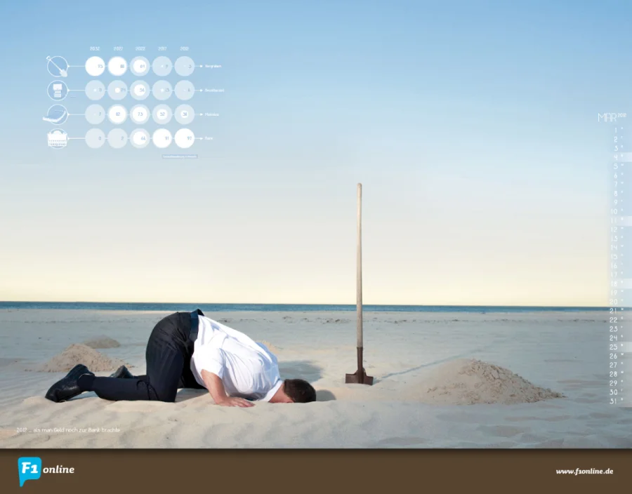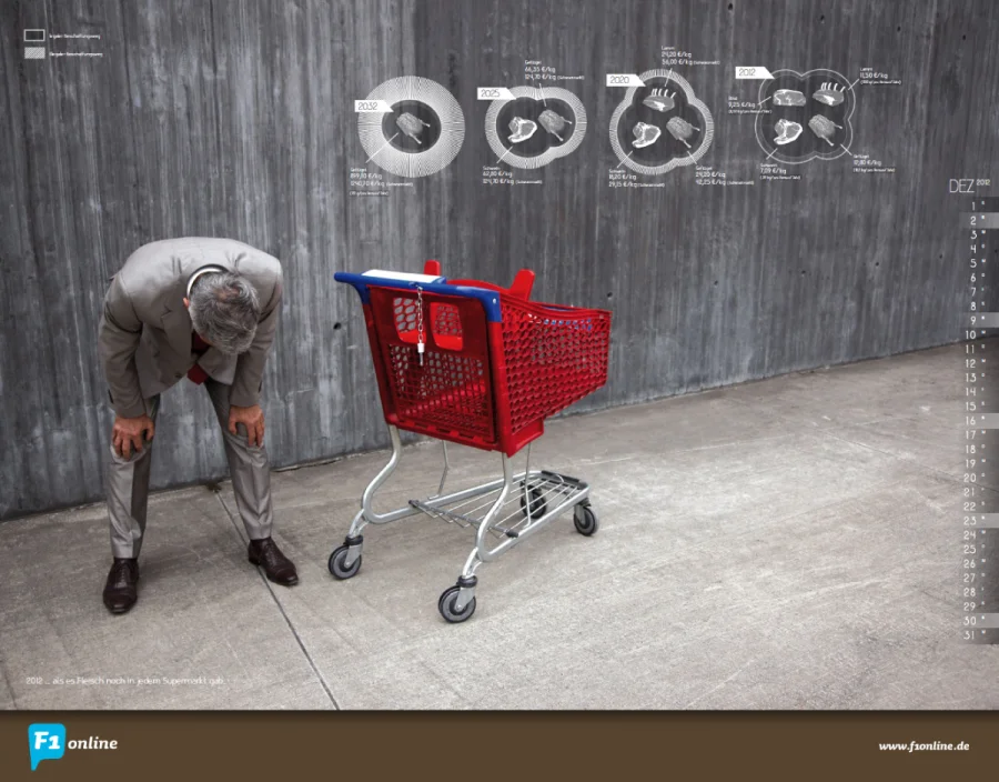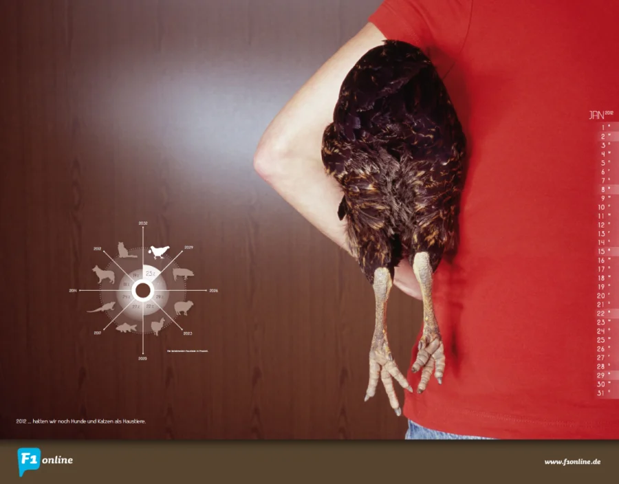 Der Kalender 2012 der Frankfurter Bildagentur F1online stellt Prognosen, Trends und Zahlen vor – mal skurril, mal ironisch oder naiv, aber immer opulent mit großen Bildern und subtiler Grafik.