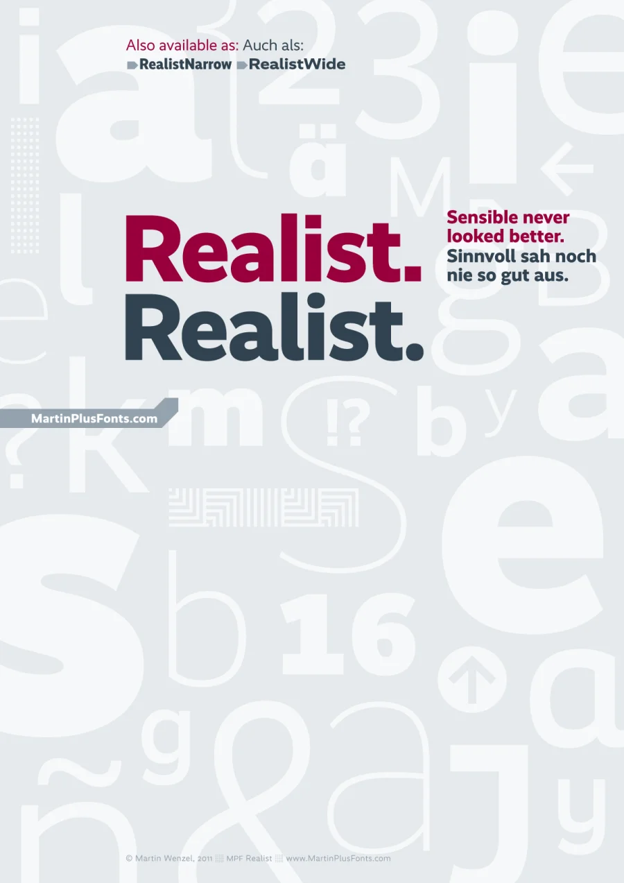 Schriftmuster der Realist, RealistNarrow und RealistWide kann man sich hier runterladen