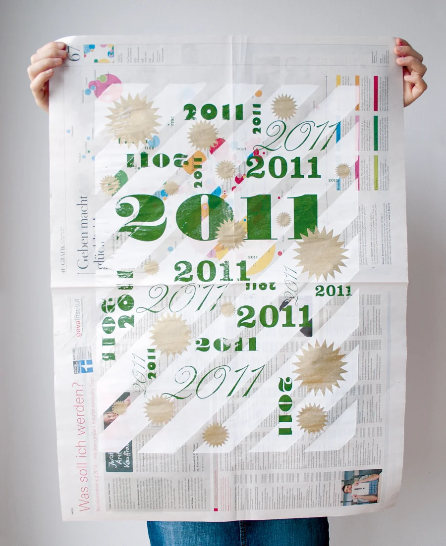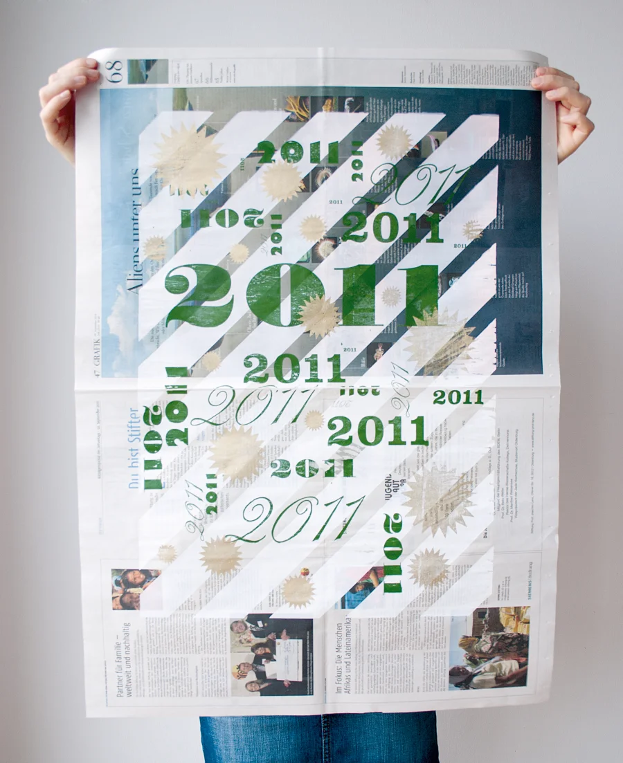 Zum Ende 2011 entstand das 100 % Handmade, gesiebdruckten Geschenkpapier welches sich auch wunderbar als Plakat eignet. Entstanden ist diese Serie aus Unikaten aus dem Bedürfnis heraus mal weg vom Rechner, dem Agentur- und Freelanceralltag zu kommen und wieder mal etwas Analoges mit den Händen zu machen. So verbrachten die beiden Designerinnen Magdalena Dostal und Sabine Brambach kurz vor Weihnachten viel Zeit in der Werkstatt und bedruckten mit jeder Menge Spaß und Herzblut besagte Zeitungsbögen, welche sich als praktisches Geschenk bei Kunden und Freunden äußerster Beliebtheit erfreuten.