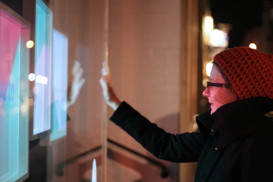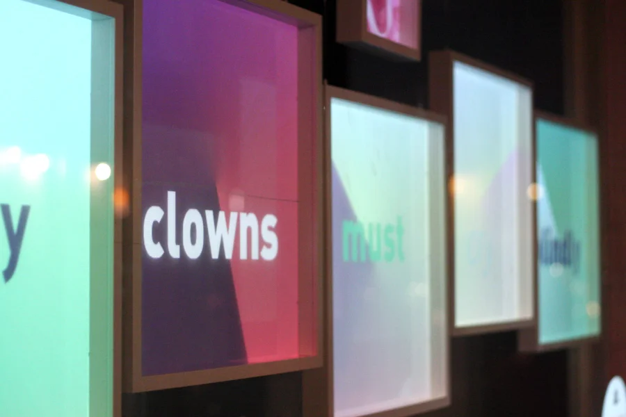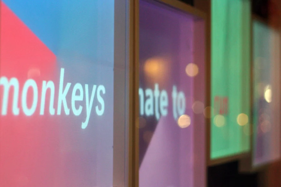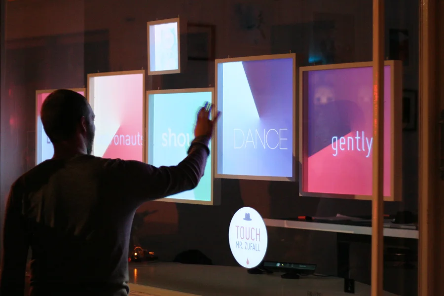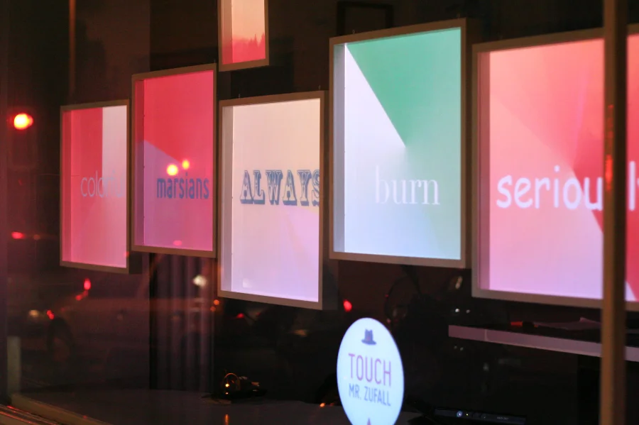 Nach “All Eyes On Me” und “Just Wave” ist nun die dritte Edition unserer interaktiven Schaufensterserie Schau! online. Animiert durch den 90er-Jahre-männlichen-Pupertätstraum Samantha Fox, können Passanten jedes Wort, eines per Zufall gebildeten Satzes, durch Bewegung der Hand ändern. Oder sie nutzen den Zufallsbutton.