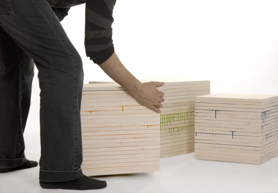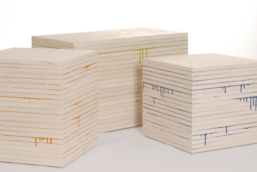 Farbkästen sind unterschiedlich große Boxen mit Deckel. Es sind experimentelle und spielerische Möbel. Die farbenfrohen Designobjekte sind als handgefertigte Einzelstücke erhältlich.