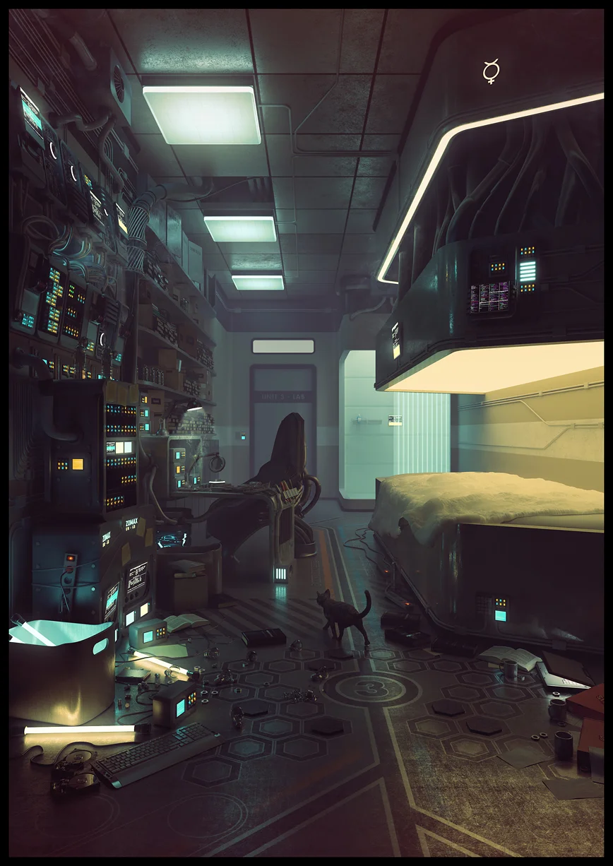 Vielleicht kann der Mann oder das Mädchen, die zusammen mit der Katze in diesem Zimmer leben und arbeiten, das besser beschreiben.