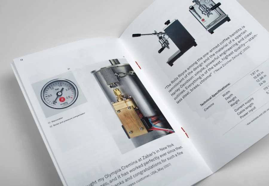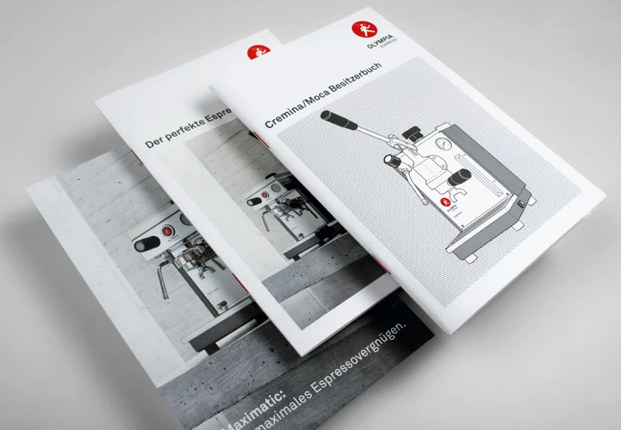 Und um so eine Traditionsmarke erfolgreich neu zu definieren, braucht es auch einen mutigen Auftraggeber. Einen, der zum Beispiel bereit ist, mit den ungeschriebenen Gesetzen der Branche zu brechen und statt der üblichen Gebrauchsanleitung jeder Expresso-Maschine ein aufwändig gestaltetes »Besitzerbuch« mit Markengeschichte, Espressorezepten und technischer Anleitung beizulegen. Es ist wirklich gruselig, was da mancher Maschine jenseits der 1.500 Euro als lieblose Anleitung beiliegt. Das konnten wir anders machen.