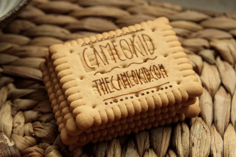 Die Kontaktdaten wurden mit einem Laser auf die Oberfläche graviert. Die Kekse entsprechen ungefähr der Größe einer normalen Visitenkarte und passen somit in jede Geldbörse.